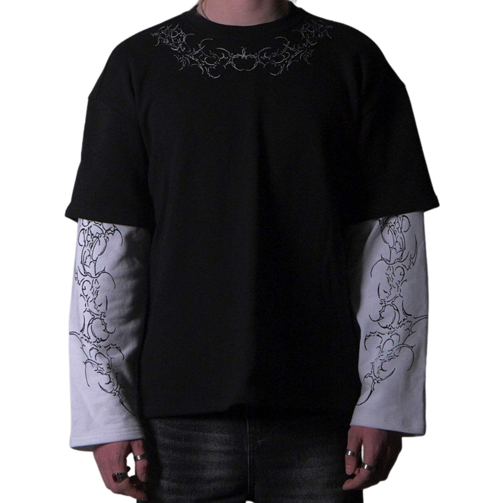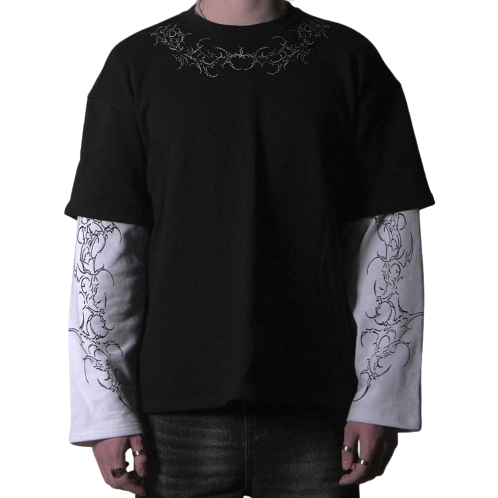 Package: 1 pcs fake two-pieces pullover long sleeves top.