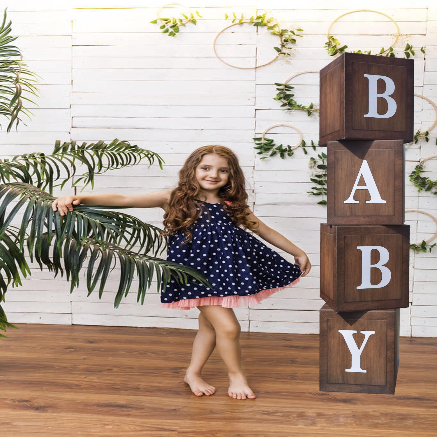 Unique Design:4pcs wood grain style baby boxes with its lovely white BABY letters printed for baby shower or birthday party.