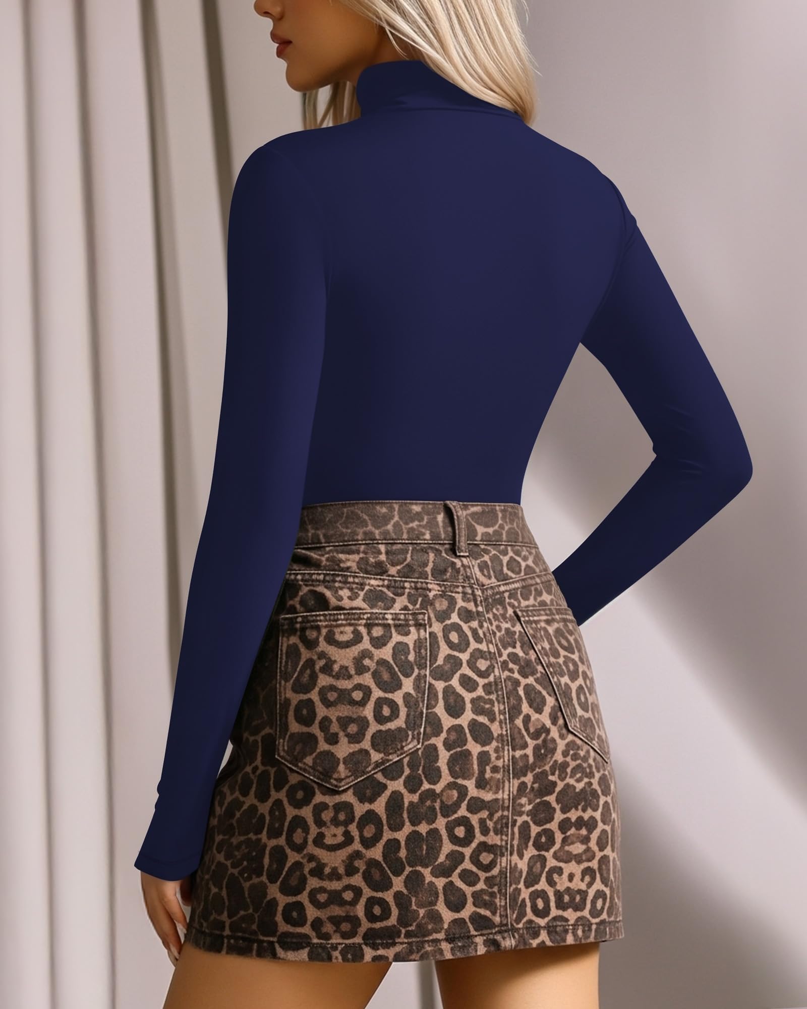Versatile Style: Women's mock neck bodysuit is comfortable and versatile, easily paired with pants, shorts, or skirts to enhance your look. It features two snap buttons at the bottom for convenient wear.