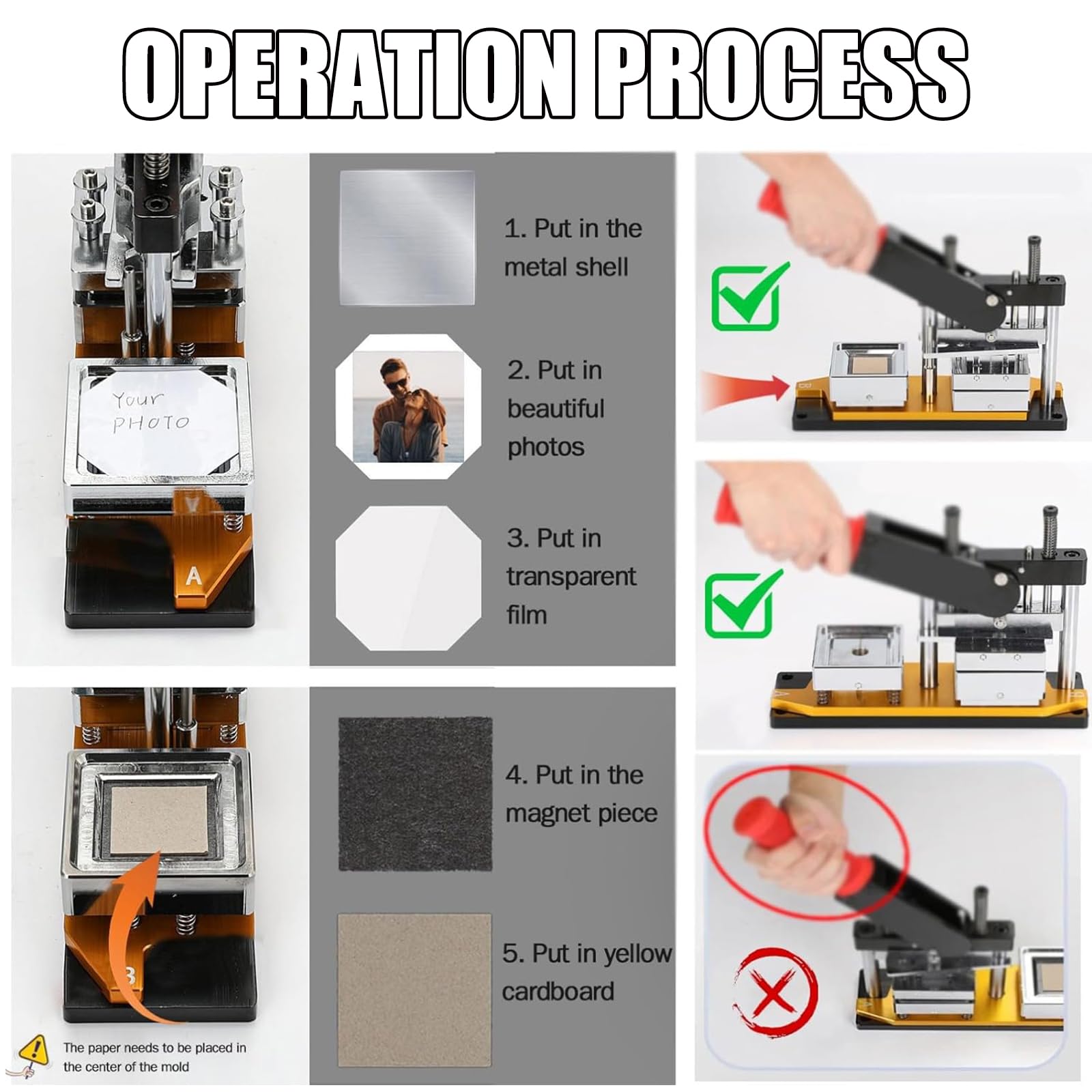 【ONE-TOUCH PROFESSIONAL CREATION】Imagine creating professional badges with zero experience! Our magnet maker machine simplifies the process into three easy steps: insert your design, close the mold, and press. In under 60s, you'll have a durable, glossy, and store-quality badge or a custom magnetic maker item. magnet making machine perfect for helping with your child's school projects or creating promotional merchandise for your business