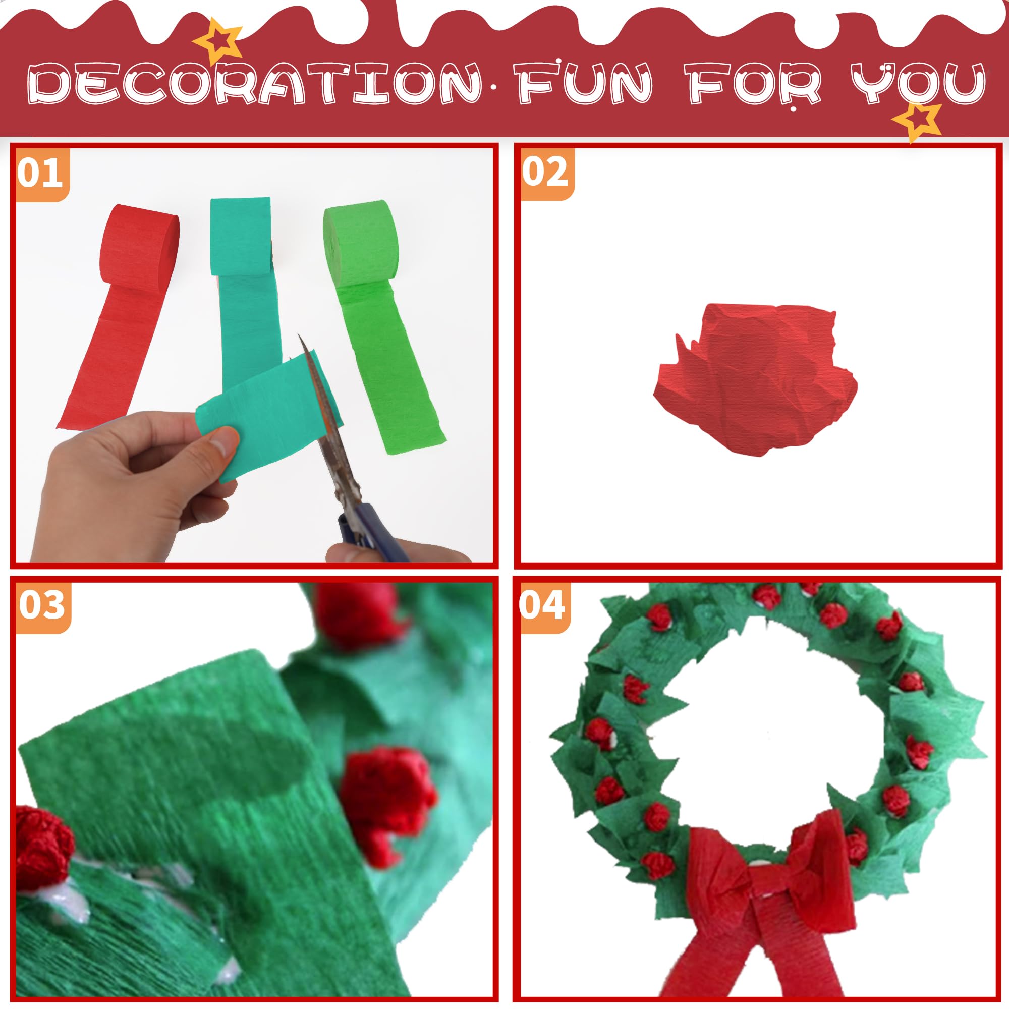 Size Of Each Roll: The width of each roll of Christmas streamers is 1.77 inches and the length is 82 feet. The total length of the 12 rolls is 984 feet, enough to fill an entire party space. Perfect for party decorations and DIY crafts.