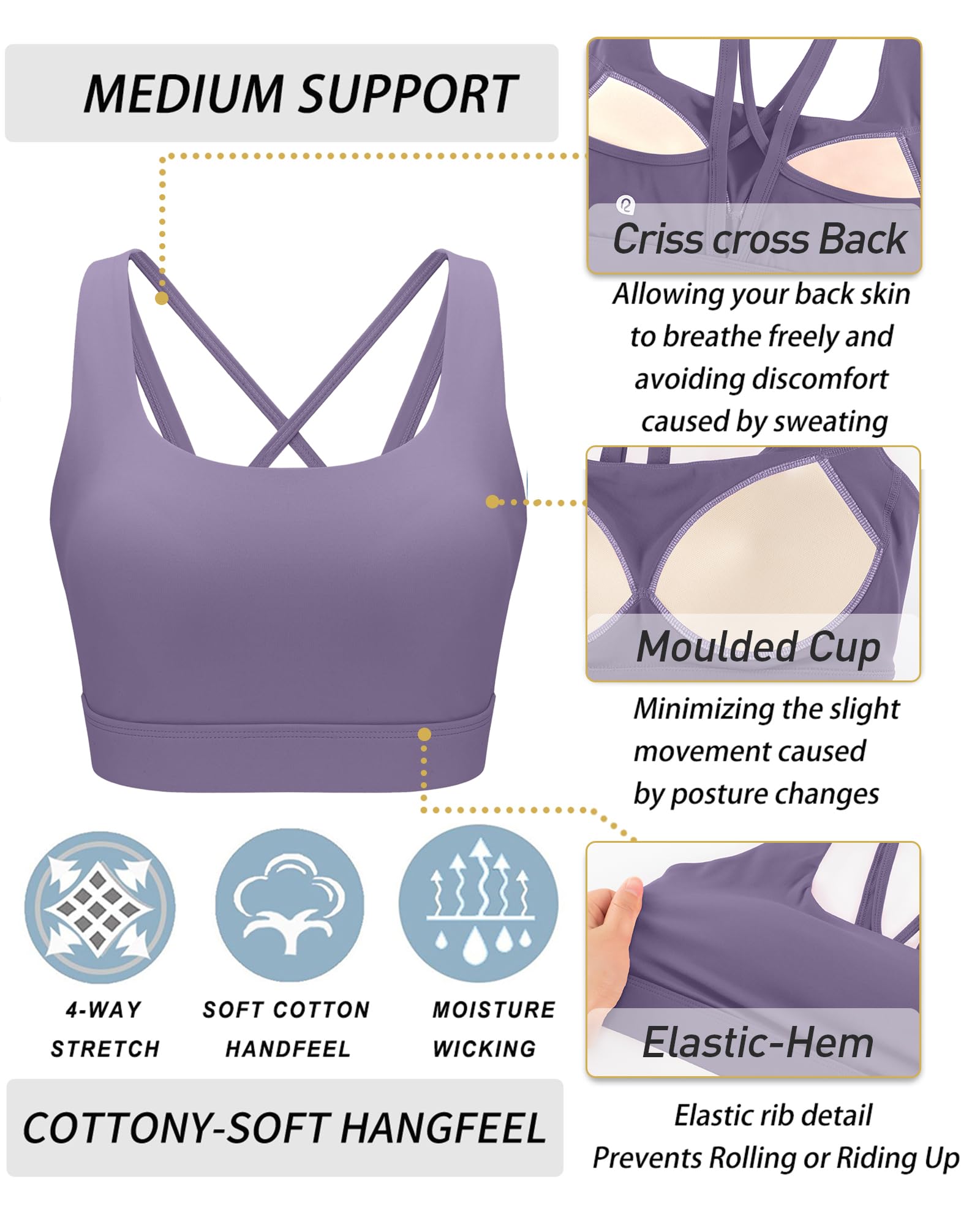 [Upgraded Fabric] On a bright weekend morning, you wear our running girl sports bra and head out for an outdoor jog. Our sports bra, crafted with Lycra fabric, feels as soft and comfortable as a second skin. Even during running, it maintains its elasticity, providing the right amount of support for your chest, preventing any discomfort during exercise. After the run, when you're drenched in sweat, the running sports bras for women quickly absorbs the moisture, keeping you dry and breathable.