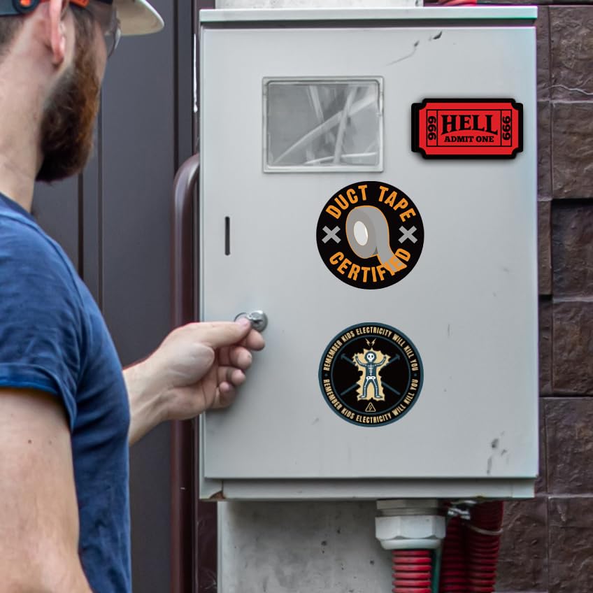 πͺ TOUGH, VERSATILE VINYL STICKERS: Premium Quality & Waterproof, Built to Last in Any Environment, Adheres Firmly to Curved or Domed Surfaces like Hard Hats, Toolboxes, Welding Helmets, Construction and Electrician Tools, and More.
