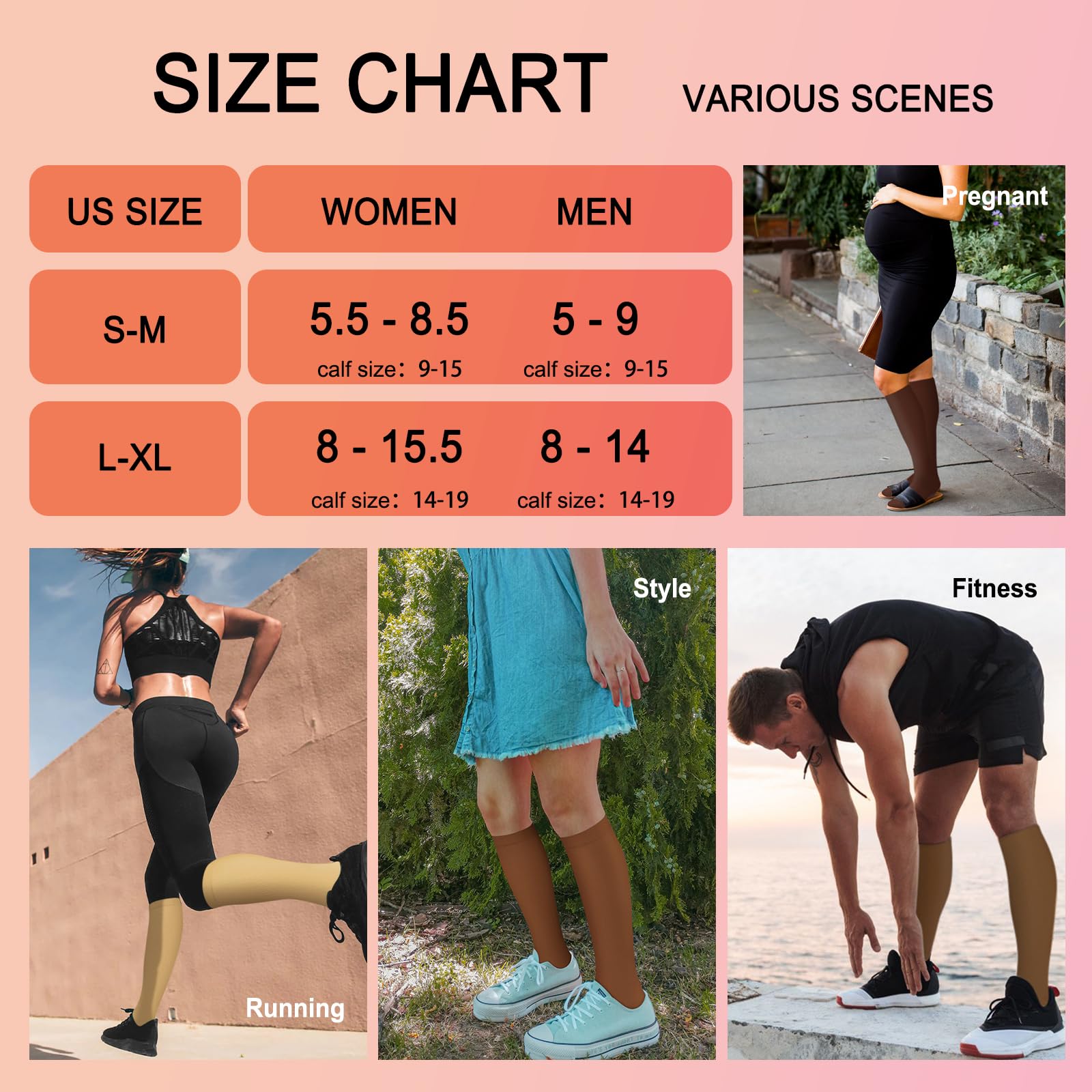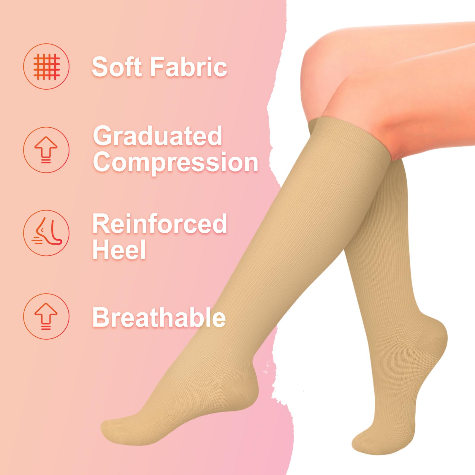COMFORTABLE WEARING EXPERIENCE - Our compression socks fit snugly from toe to calf, injecting vitality into your skin. Delivers 360-degree stretch for greater flexibility and durability, without leaving marks on your skin. Wide Top Comfort Band Keeps the socks from pinching,chafing,or rolling down. All-Day comfort,support & energy,perfect for your active lifestyle. 4 PAIRS OF UNISEX : Our socks available in a variety of colors, unisex.
