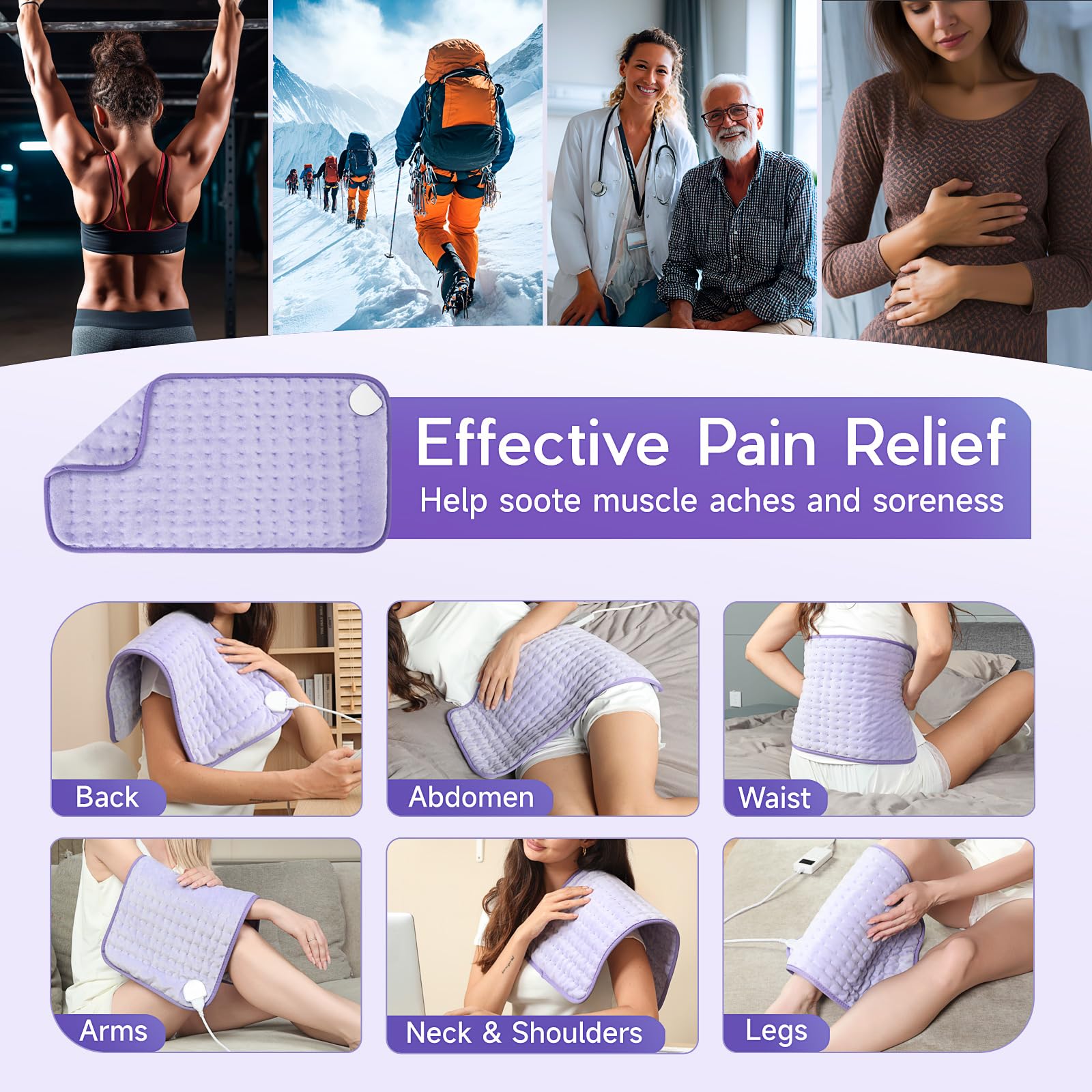 Multi-Function & Warmer & Safer Heating Pad: Featuring with an intuitive controller to set 6 temperature levels(104°F–149°F) and 4 timer options (1H, 2H, 4H, 6H), empowering you to customize heat therapy for maximum comfort. The auto-off function prevents overheating while minimizing energy waste, ensuring peaceful and uninterrupted sleep. Engineered for accuracy, the pad's reliable temperature regulation and timer controls enhance therapeutic effectiveness, prioritizing both wellness and safety
