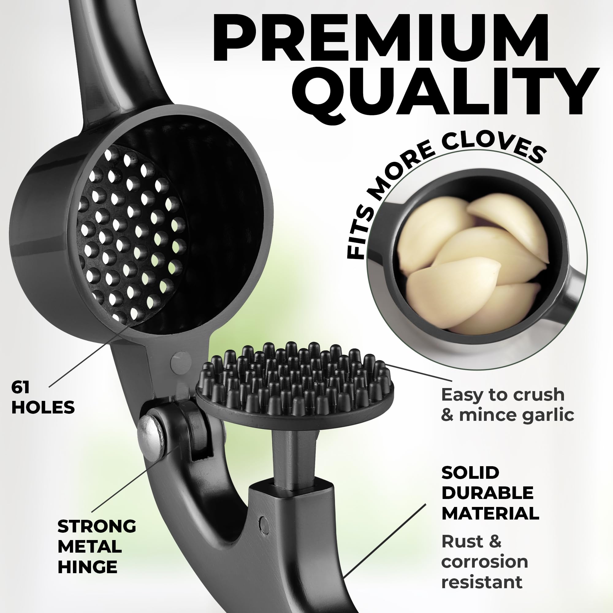 SIMPLE TO USE & BUILT TO LAST: Our premium quality garlic press is constructed from food-grade, rust-resistant materials meant to be among your favorite kitchen gadgets for years to come. This garlic and ginger mincer is designed with built-in studs to extract more paste within seconds. It is great for both professional and home kitchens.