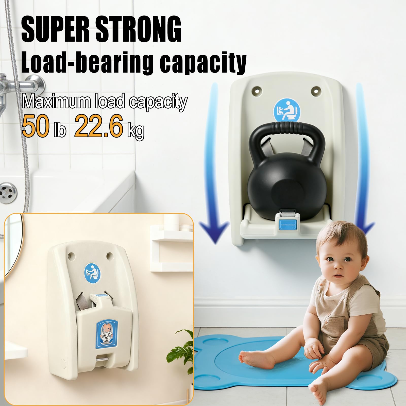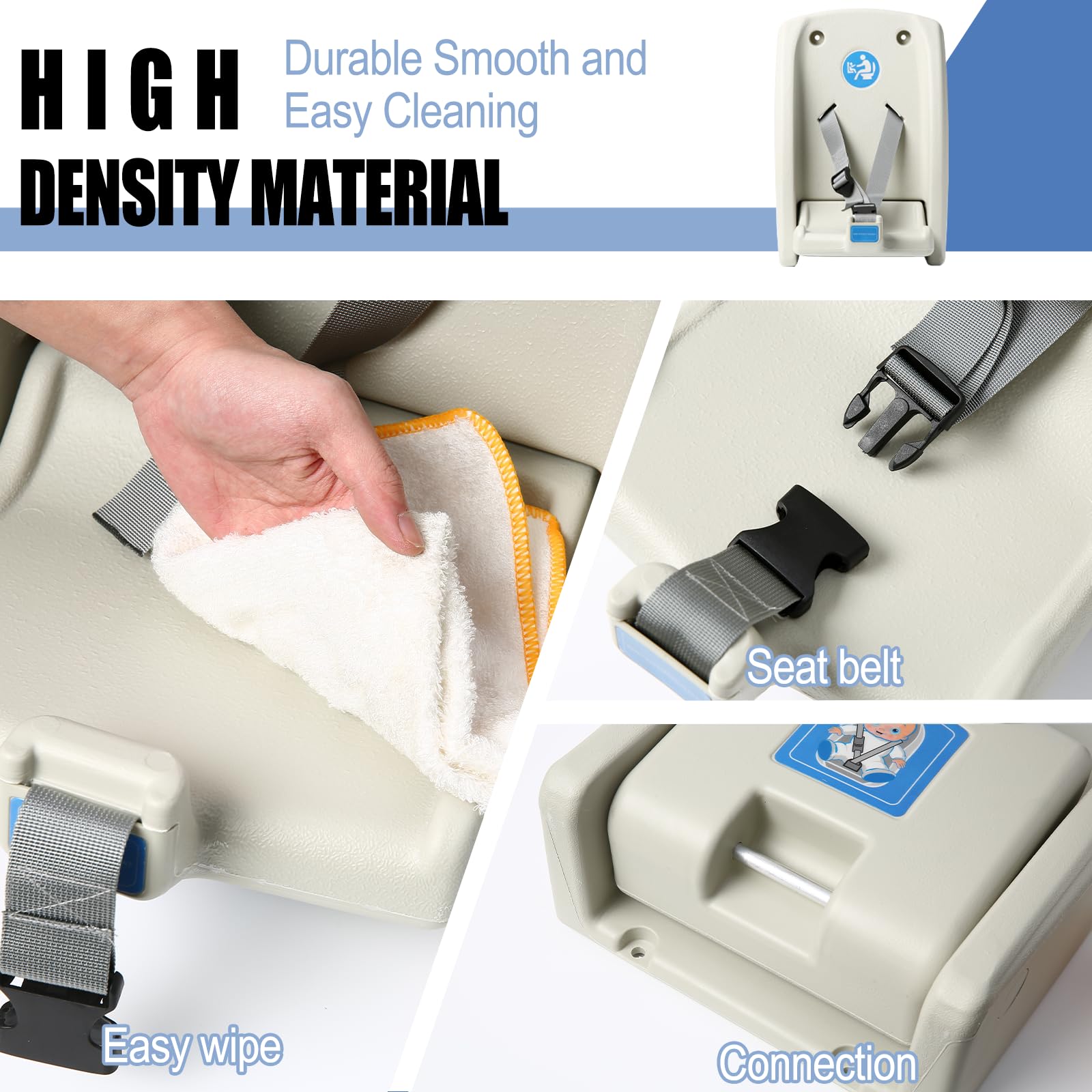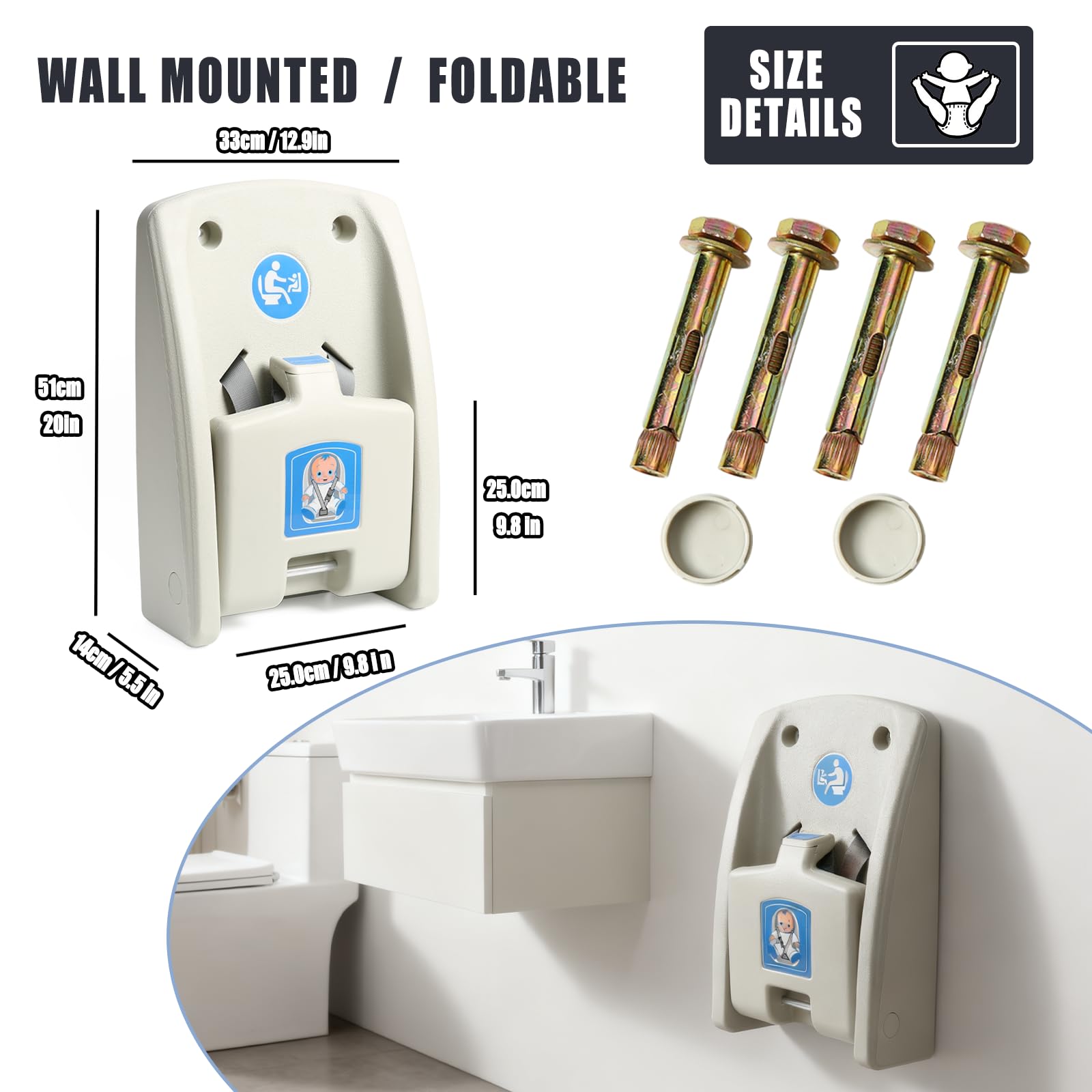Easy Installation & Versatility: No complicated tools required—easily fixed to various wall surfaces such as tiles and wood panels with precise mounting holes. Boasting a weight capacity of up to 50 lbs, it’s suitable for toddlers aged 6-36 months. Not only for public restrooms, but also ideal for home bathrooms and mother's rooms, offering versatile practicality.