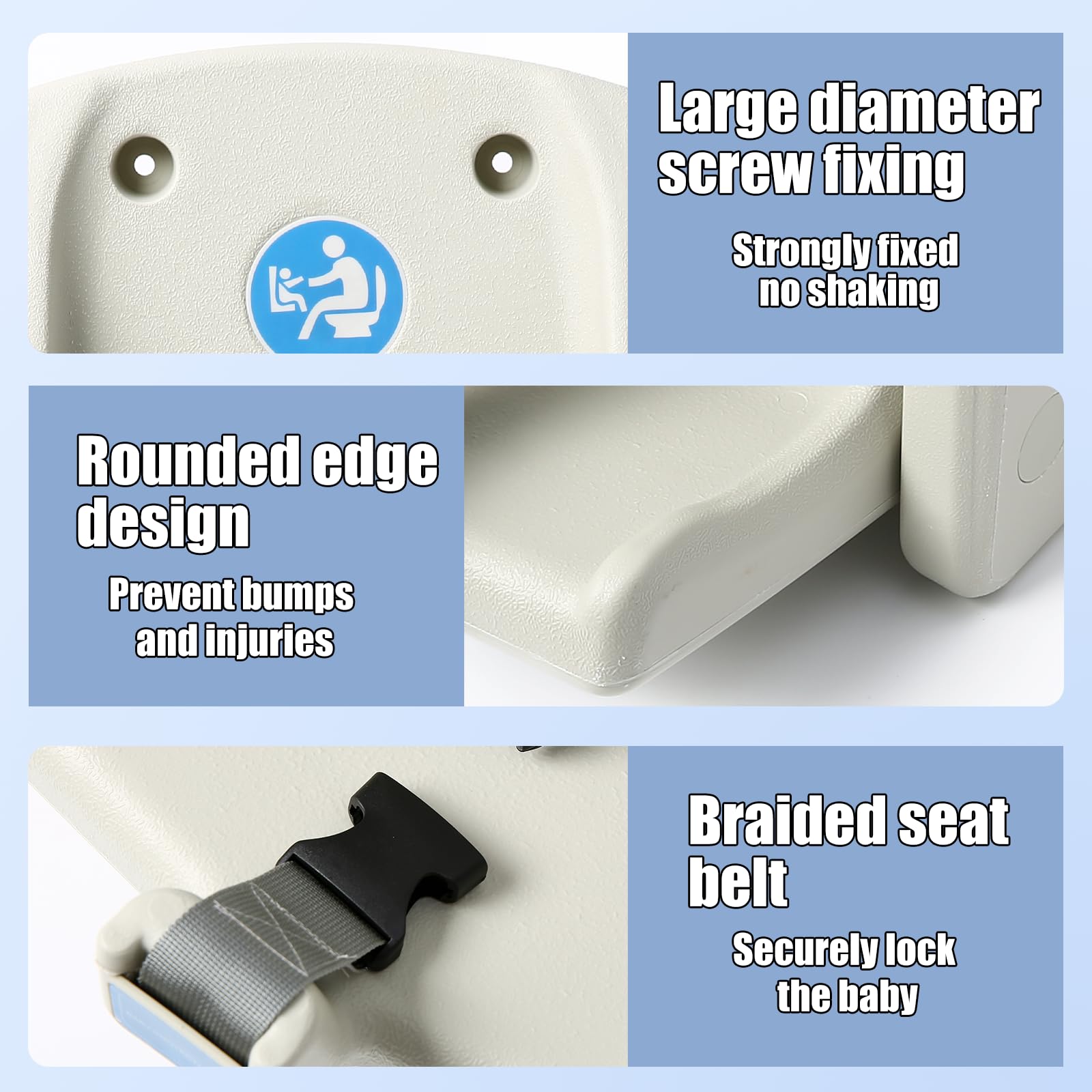 Core Safety Design: As a professional Public Bathroom Baby Seat, the wall-mounted installation ensures stability without wobbling. Equipped with a reinforced safety buckle, it prevents toddlers from slipping off 360°, providing a reliable Wall-Mounted Child Protection Seat solution for public scenarios and giving parents complete peace of mind.