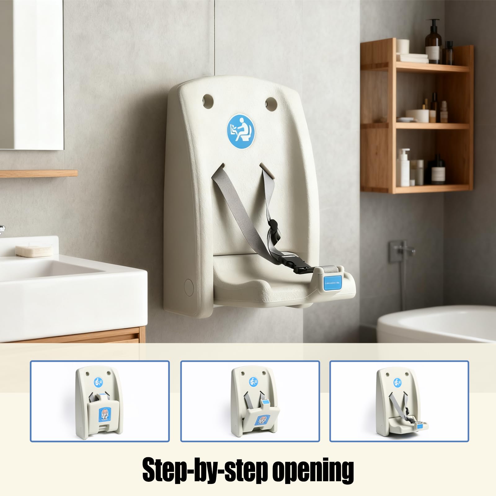 Foldable Space-Saving Design: Features an innovative foldable structure that can be quickly folded to fit the wall when not in use. It does not occupy restroom aisles or stall space, perfectly fitting the limited layout of public bathrooms. It’s the top choice for a space-optimized Wall-Mounted Child Protection Seat.