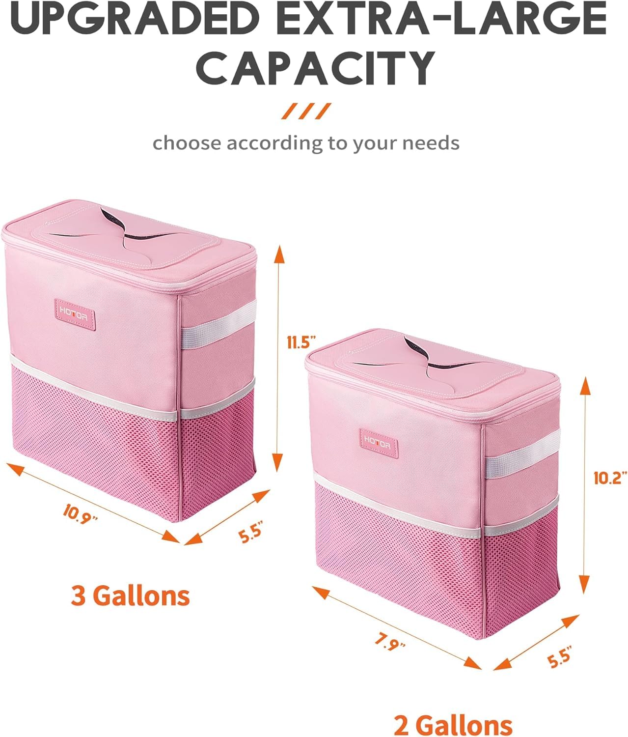 LARGE CAPACITY: Measuring 11.5 * 10.7 * 5.5 inches, HOTOR car garbage can is 1.5 times larger than many of its counterparts with its large capacity of up to 3 gallons. It serves as not only a trash bin for peels, tissues, bottles, wasted wrappers, and leftover snacks, but a practical organizer for car accessories such as clothes, towels, toys, keys, magazines, and snacks. Time for tidying!