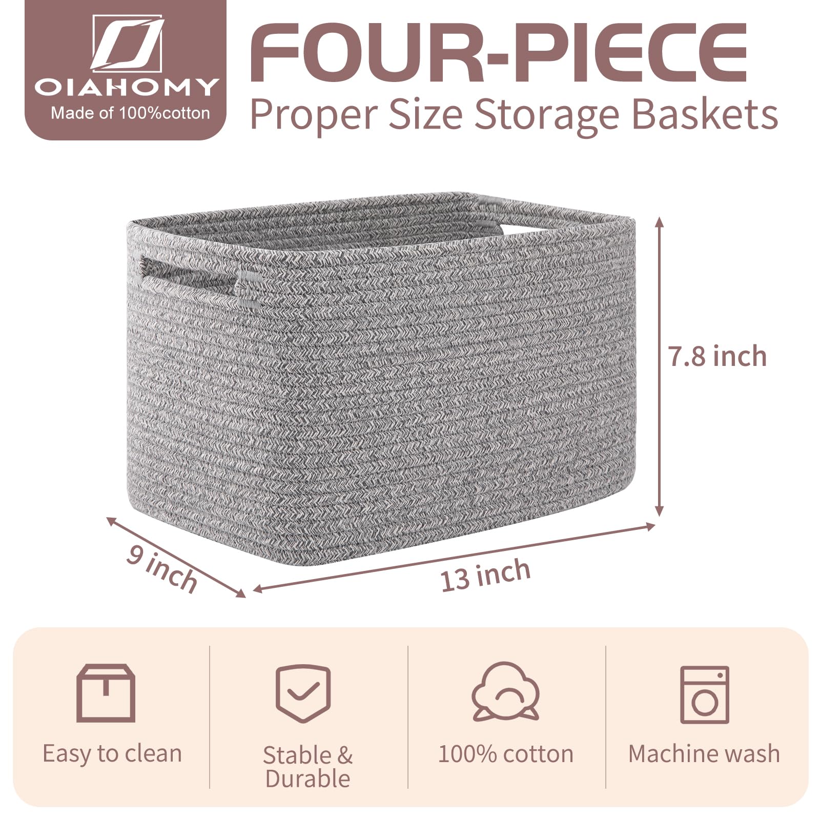 100% Cotton Rope Storage Baskets:OIAHOMY soft woven storage baskets are made of high-quality natural cotton, chemical free and safe for kids and pets. It will not scratch your furniture and floor, durable and firm