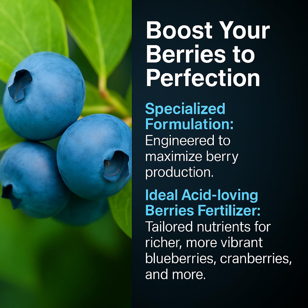 🍇 BLUEBERRY & BERRY BOOSTER – Specifically engineered to increase berry yield and flavor, this fertilizer acts as a blueberry enhancer and berry tone intensifier, ensuring your berries are bigger, bolder, and more delicious.