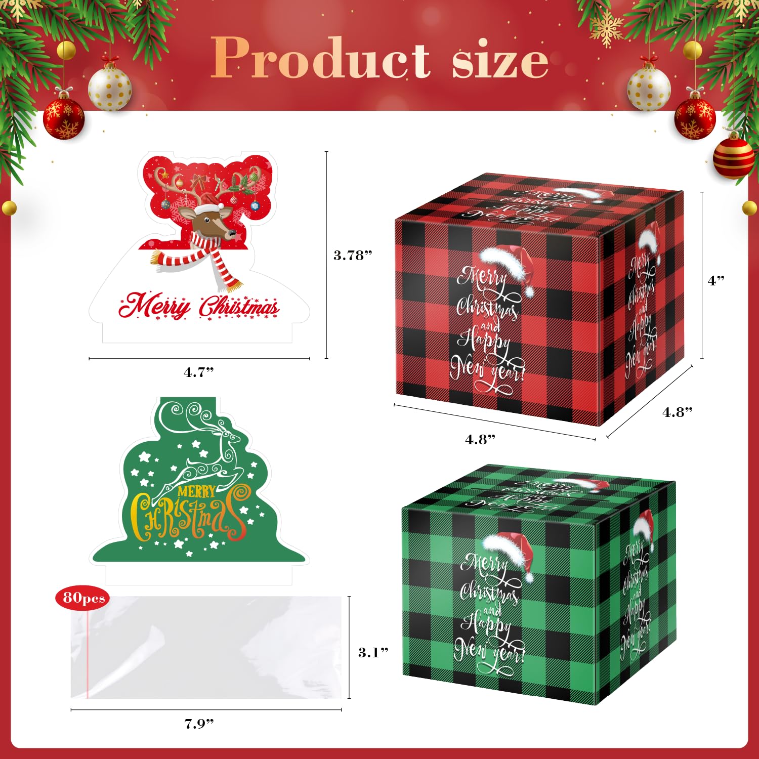 The box size is 5.1 W by 5.1 D by 3.9 H, and there are 80 pcs clear plastic bags for cash wrapping, which size is 3.1x8, it is a large amount for cash wrapping