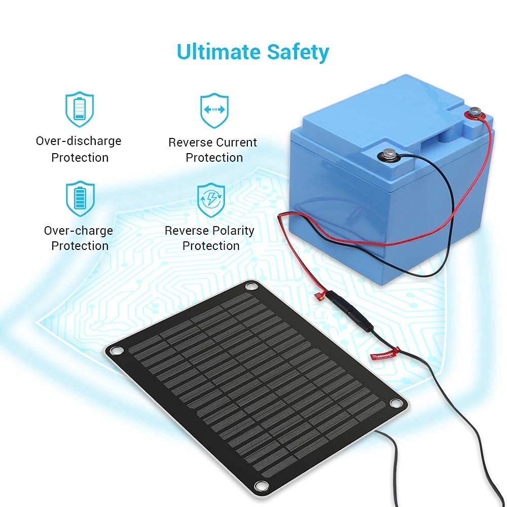 Ultimate Safety: The intelligent chip provides the battery and solar panel with comprehensive protections, including over-discharge protection, reverse polarity protection, and reverse current protection