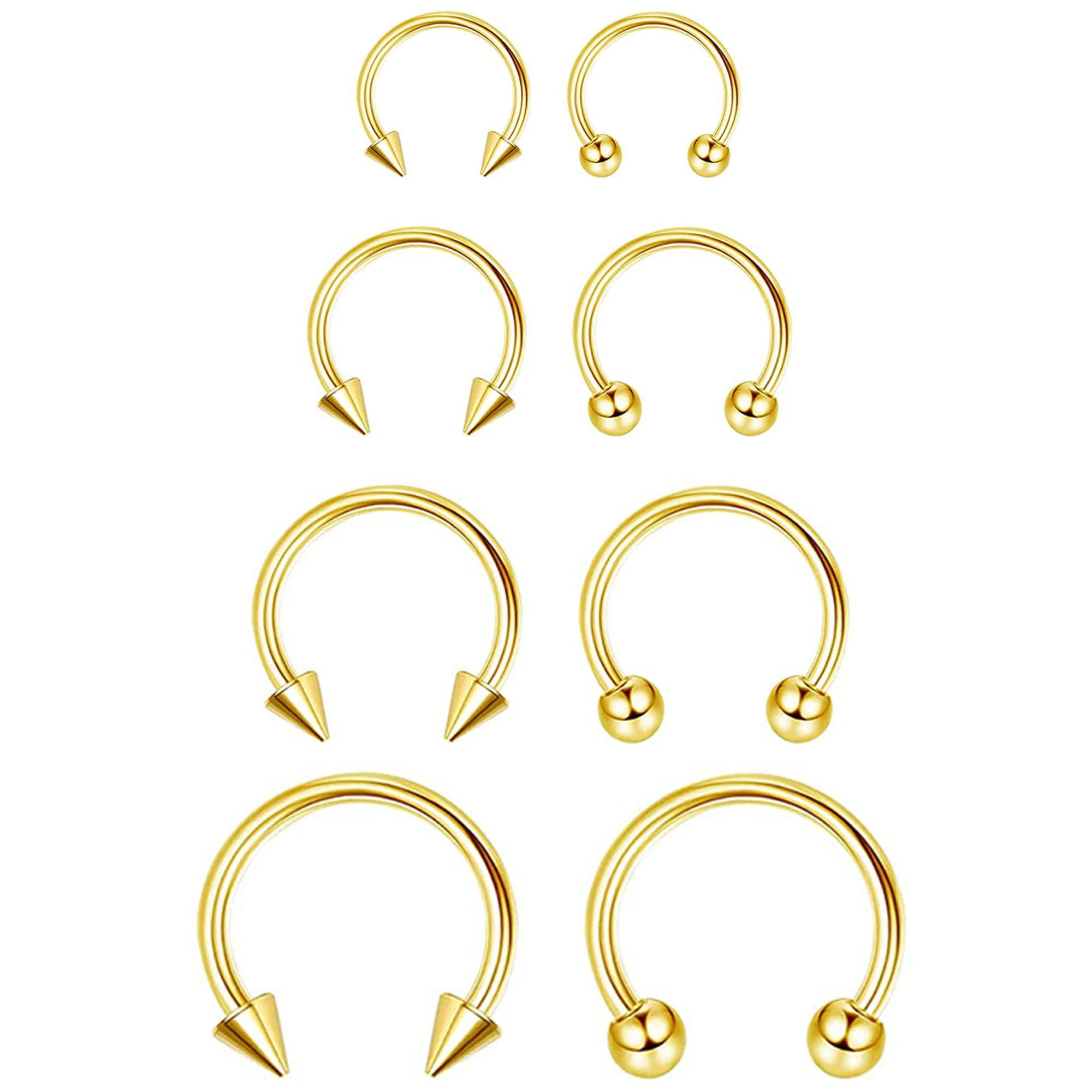【4PAIRS of 14G HORSESHOE RINGS SET in DIFERENT SIZES】Regular gauged: 14Ga/1.6mm, Ball size : 3mm, Inner diameter of hoops from 6mm, 8mm, 10mm, 12mm ; Different size of small body piercing jewelry multipack for multiple pircing, Good chioce for septum, smiley, nose, nostril, lip and labret piercing, Also practical as cartilage earrings, helix earrings, tragus earrings, rook earrings and daith earrings