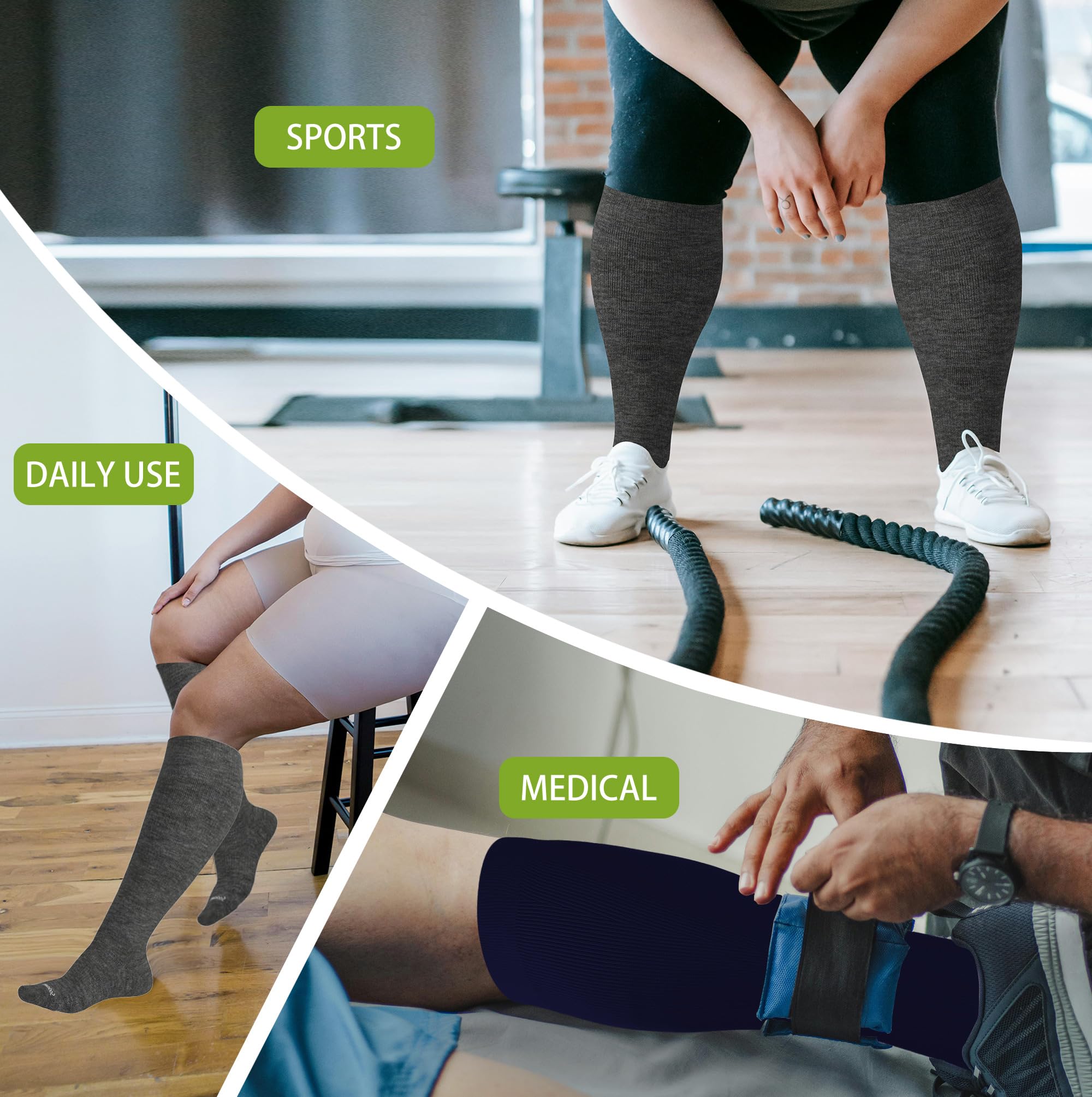 Extra Wide Compression Socks: Wide leg compression socks are available in sizes XL to 5XL. You can choose the appropriate size based on the size chart below the main image. The plus size design allows the socks to comfortably wrap around your legs, easy to put on and take off, keeping you comfortable all day long.