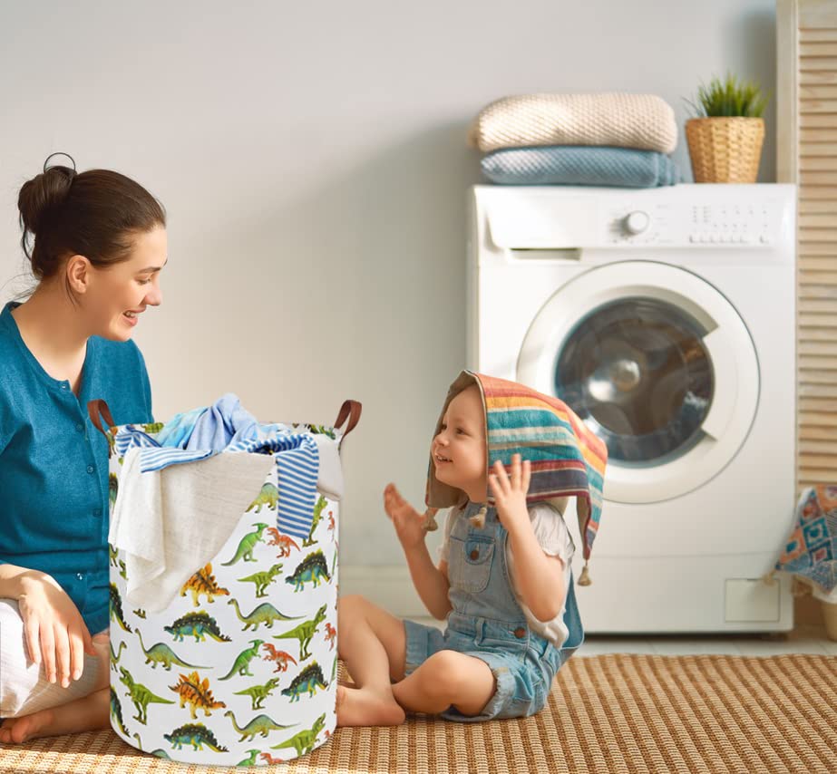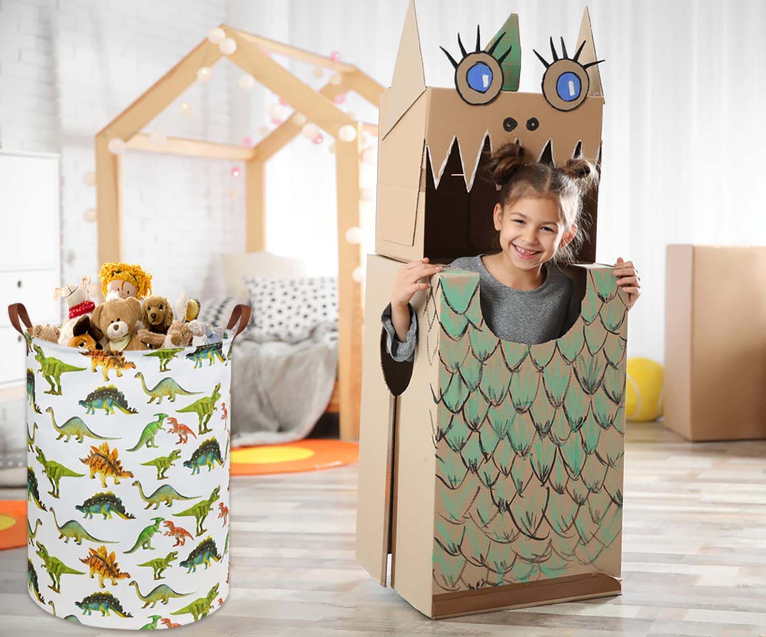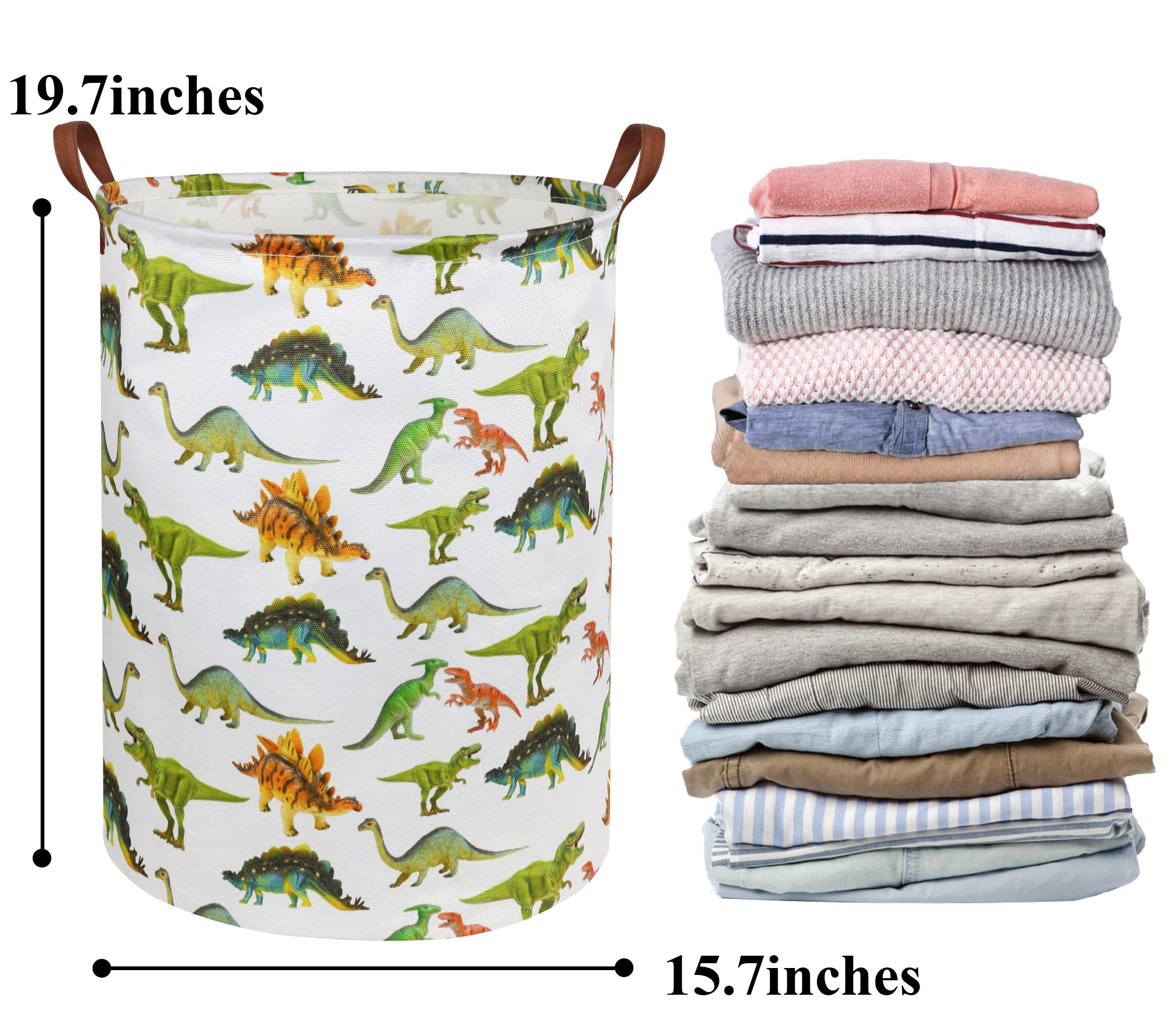 Size: 19.7"H x 15.7"D inches. Dinosaur laundry basket is great for dirty clothes hamper,toy storage bin,gift basket,nursery hamper & Closet organizer.