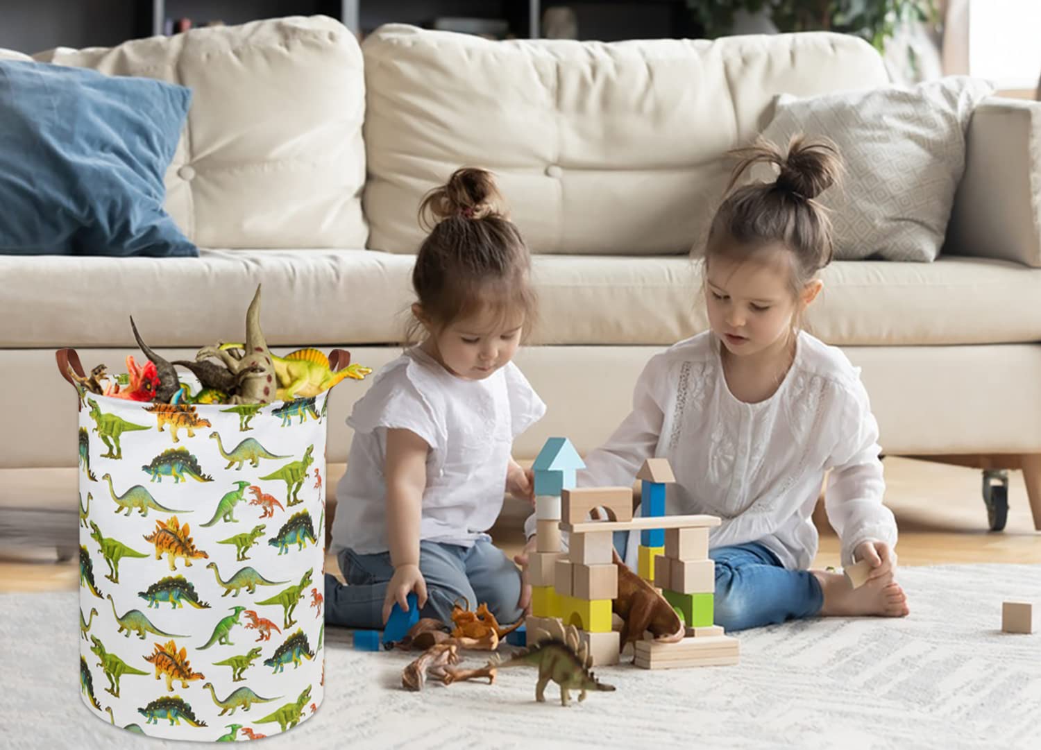 Material: The Dinosaur hamper is made of linen & cotton fabric. Waterproof PE coating inner,lightweight and durable. Our storage bin equip with two handles, moving conveniently.