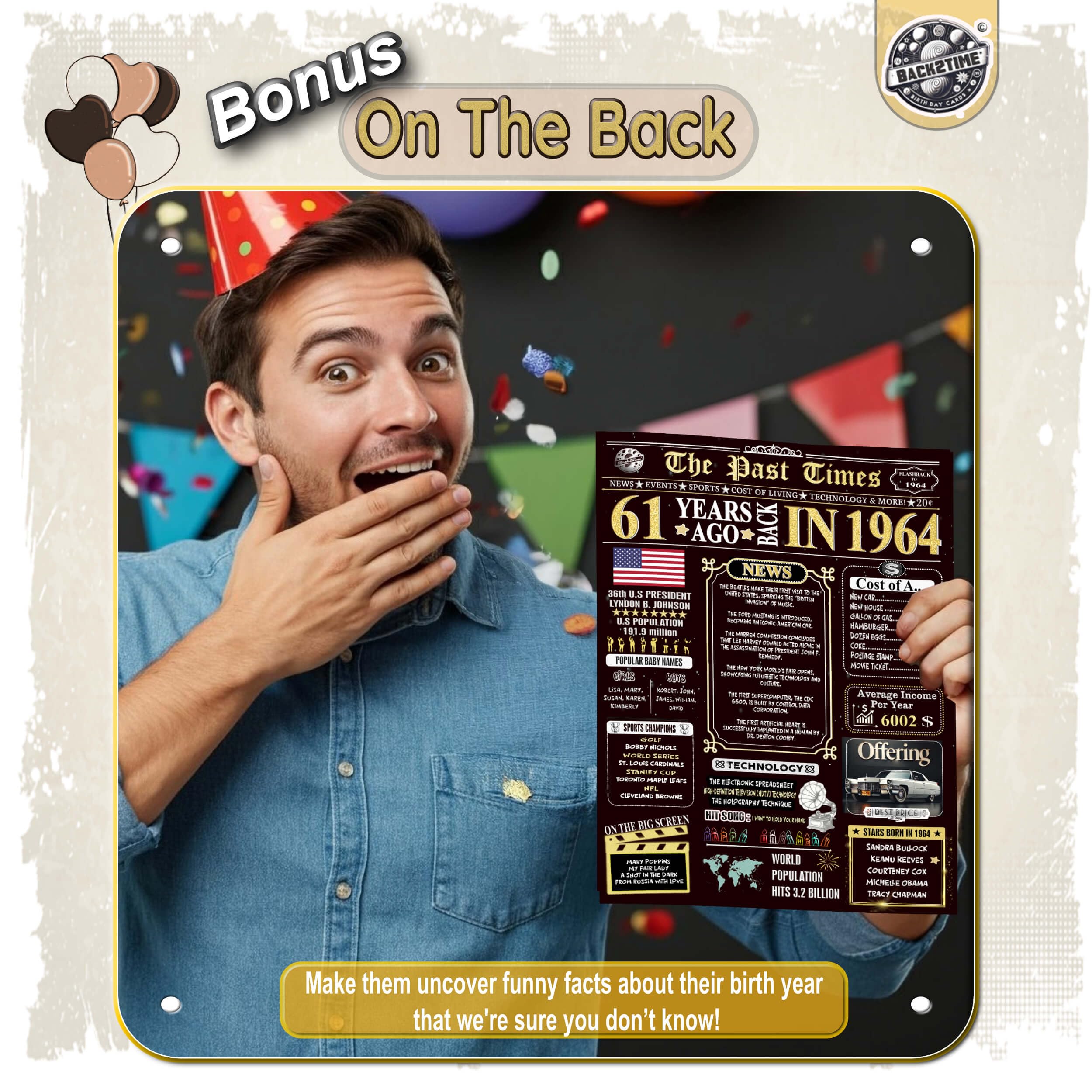 π FUNNY BIRTHDAY CARD + EXCLUSIVE ENVELOPE π Enjoy a beautifully printed Back in card that's entertaining to read, featuring a special bonus on the back with intriguing stories or lesser-known facts from that year. The interior offers space for personalized messages, designed with an aged appearance and elegant decorations to enhance the vintage feel. The included envelope boasts a unique design ideal for mom and adult born in 1964. Birthday Cards for Women, Birthday Cards for Men.