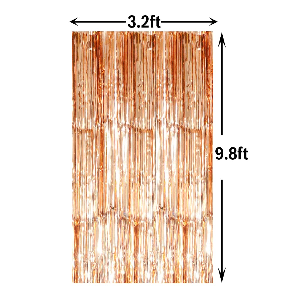 Package Includes:2 pack champagne gold foil fringe curtains,3.2 ft x 8.2 ft each,suitable for hanging on a door or coverage a wall fully