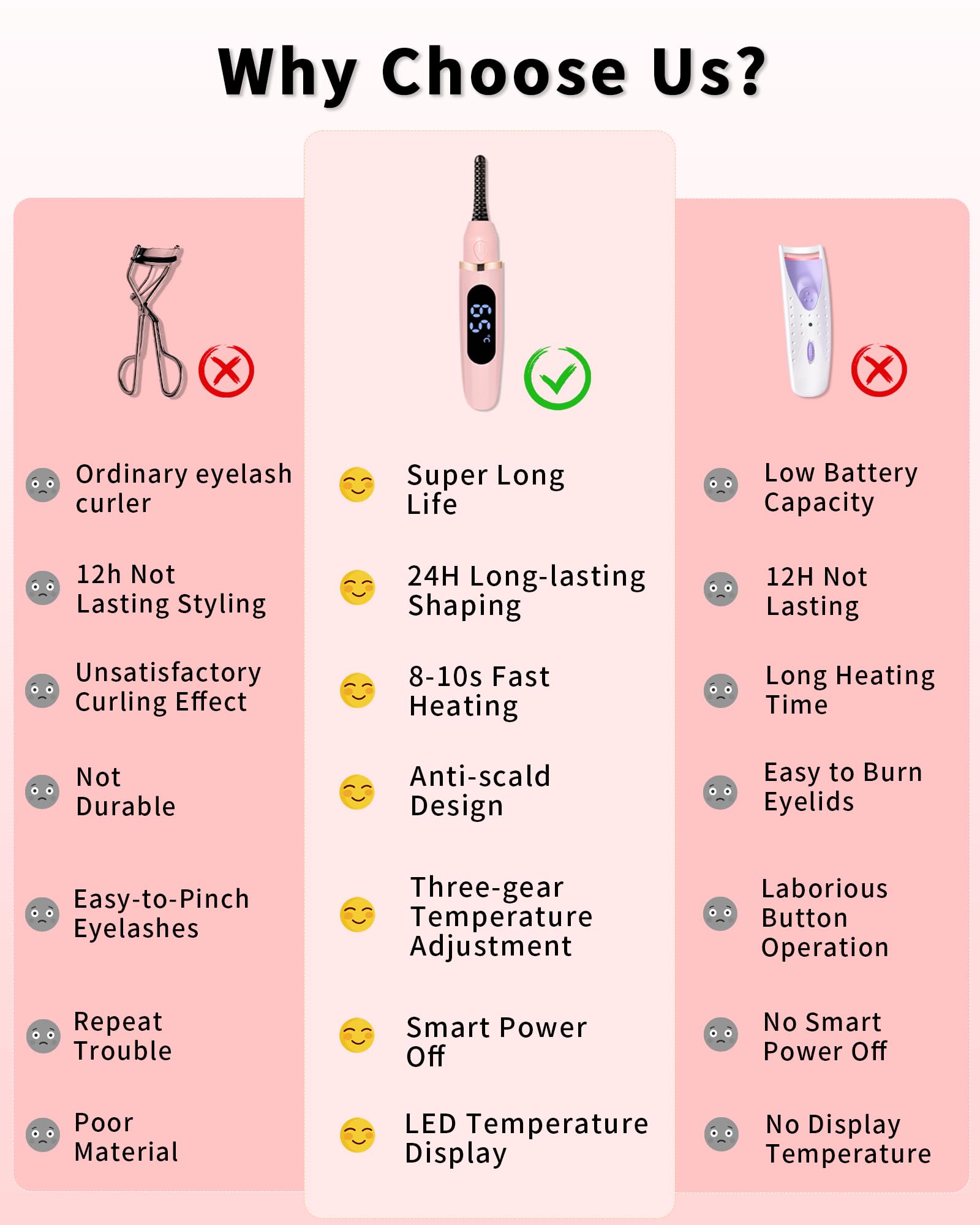 âă5-Star Customer Supportă We are committed to providing high-quality heated eyelash curlers for long-lasting beautiful curled eyelashes. If you are not completely satisfied with the performance of our heated eyelash curler, or if it does not meet your expectations within the 365-day warranty period, please feel free to contact us via Amazon message. Our team of professionals is dedicated to providing exceptional service and support!