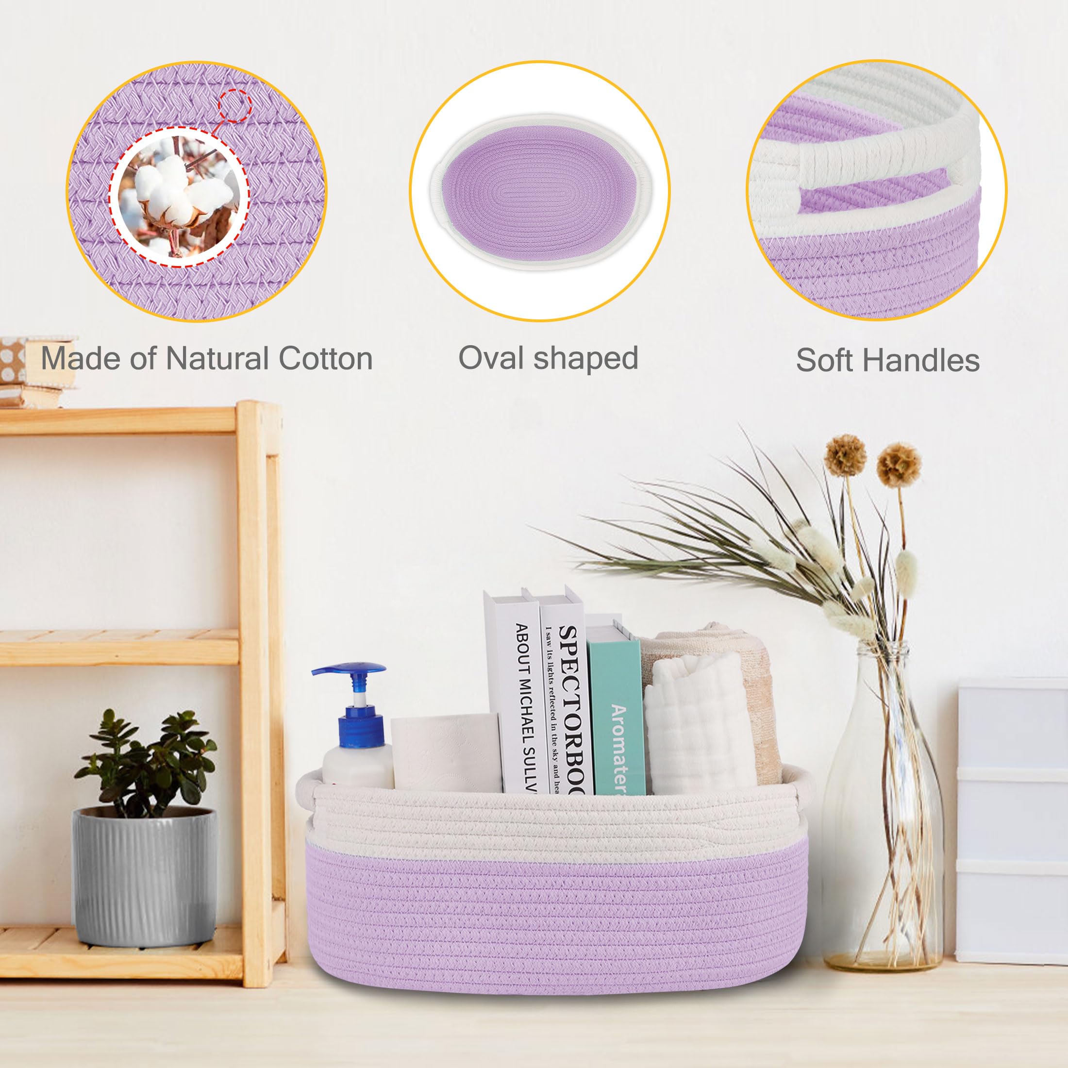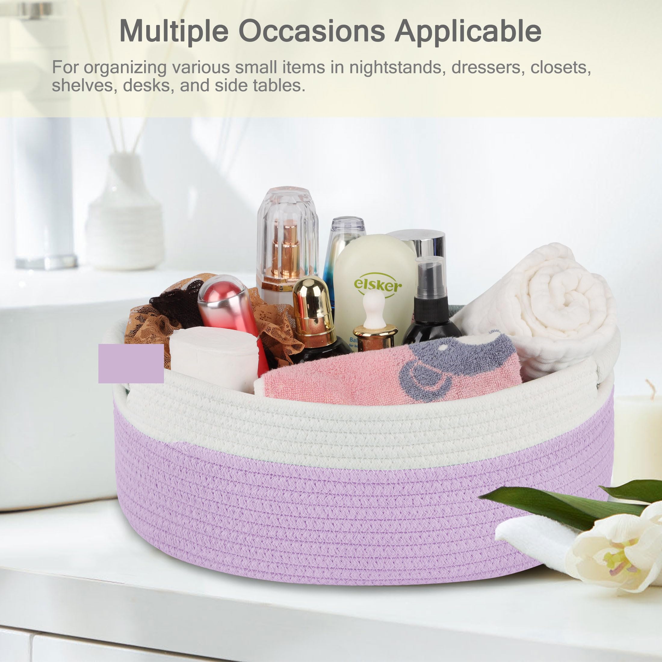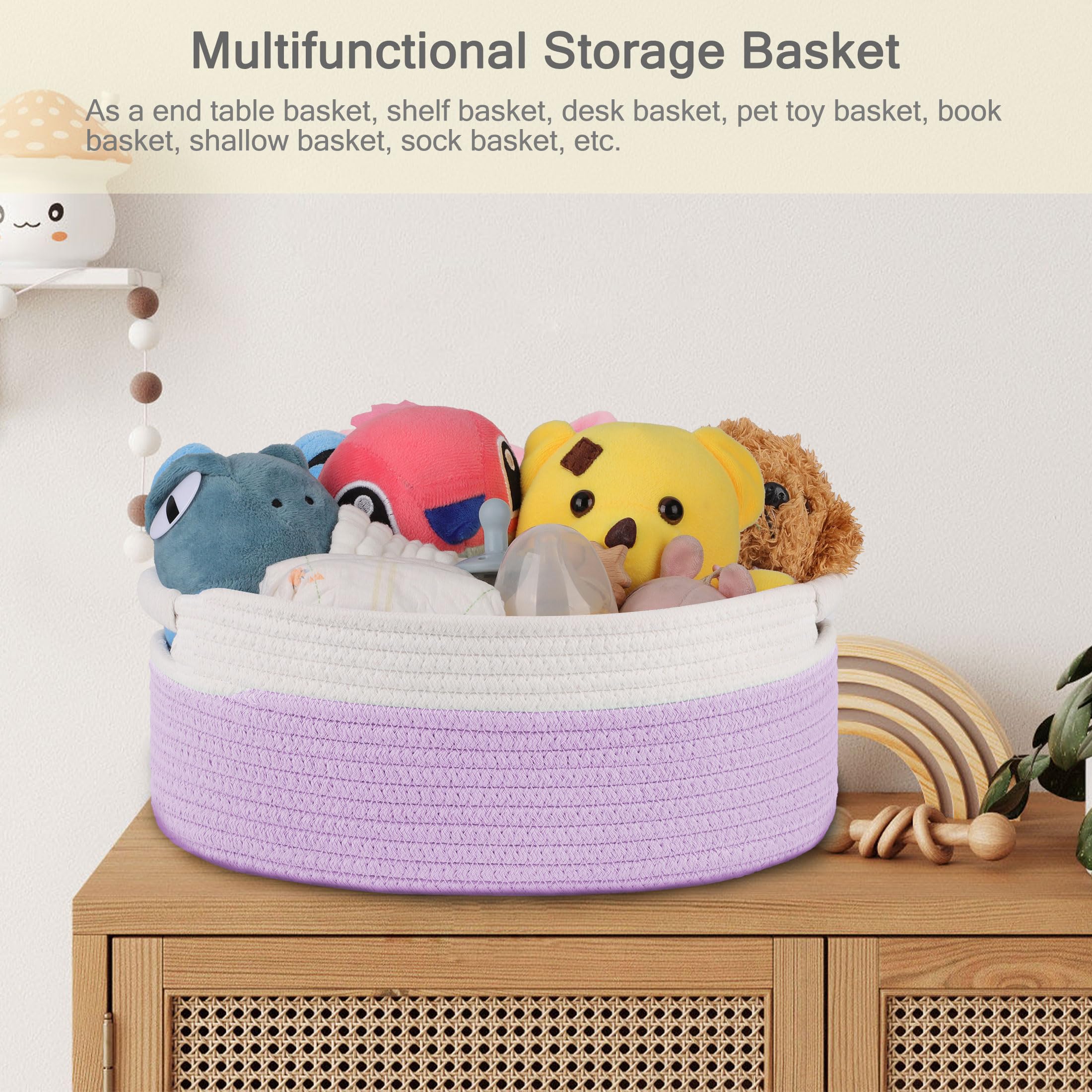 【Multifunctional Storage Basket】 Our rope storage basket is the perfect solution for keys, wallets, diapers, books, remotes, toys, makeups, and more. You can use it as a baby basket, end table basket, shelf storage basket, desk basket, kids' toy basket, book basket, shallow basket, and more. It can even be used as a pet toy basket for cats and dogs.