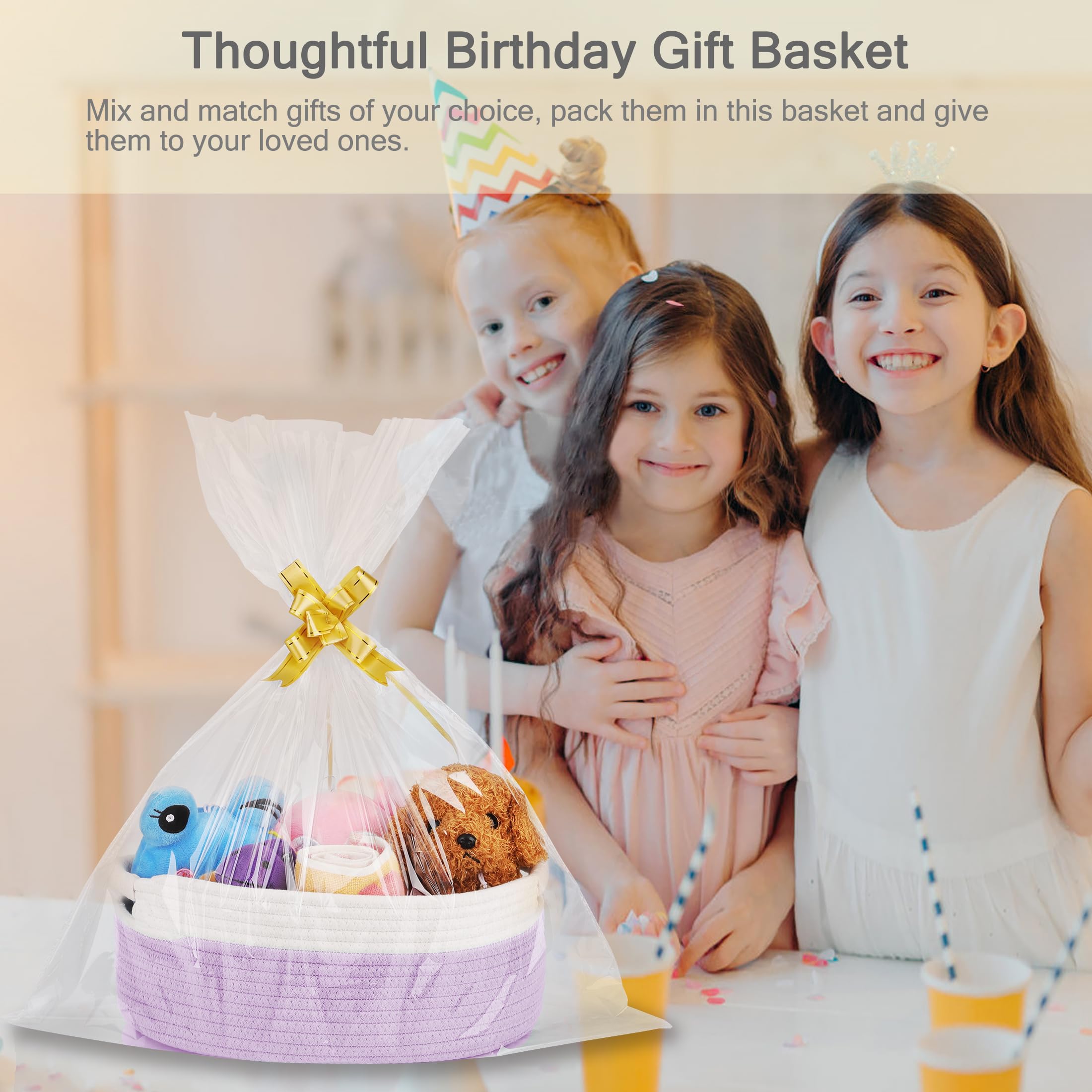 【Best Gift Set】The small storage basket comes with one clear cellophane bag and three ribbons of different colors. Mix and match gifts of your choice, pack them in this basket and give them to your loved ones. It's perfect for various occasions like Birthdays, Baby Showers, Mother's Day, Father's Day, Valentine's Day, Graduation Gifts, Easter, Christmas and more. This woven basket is a great gift in itself.