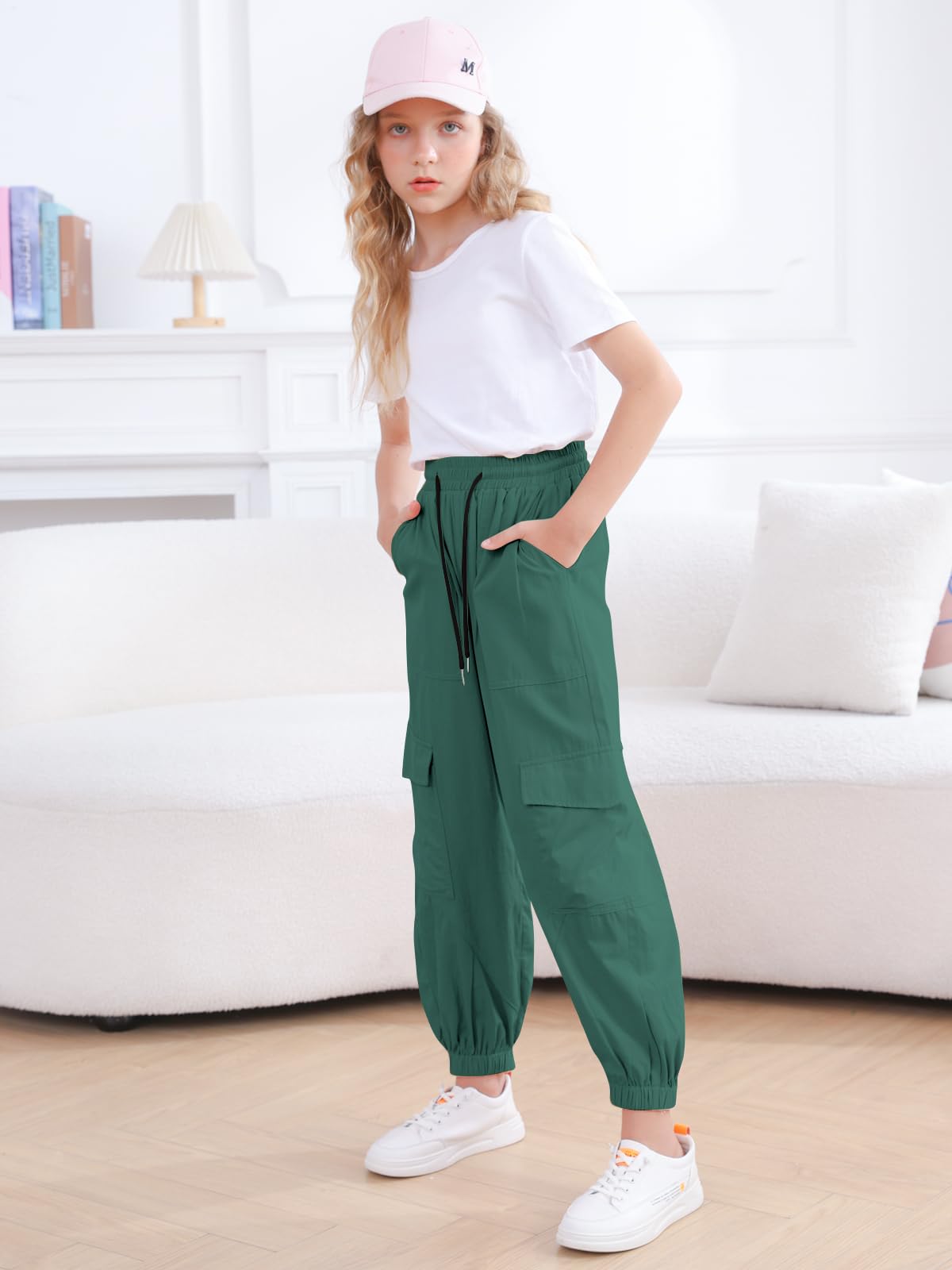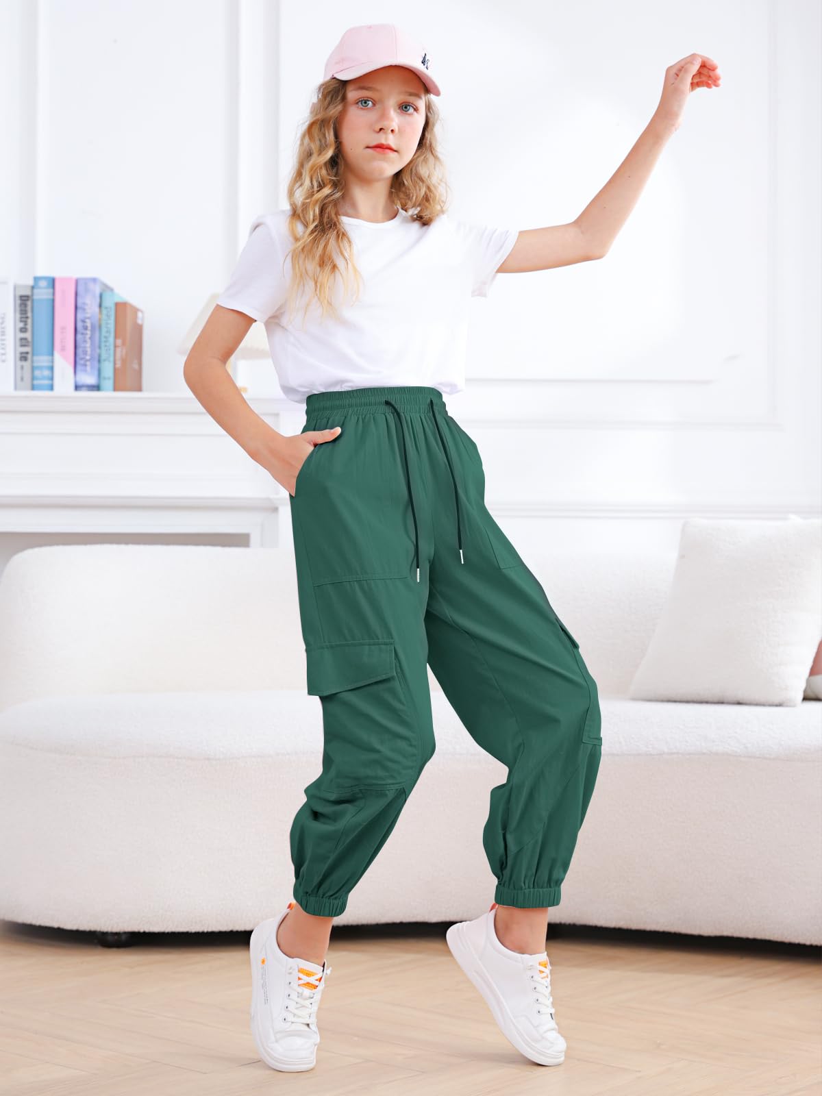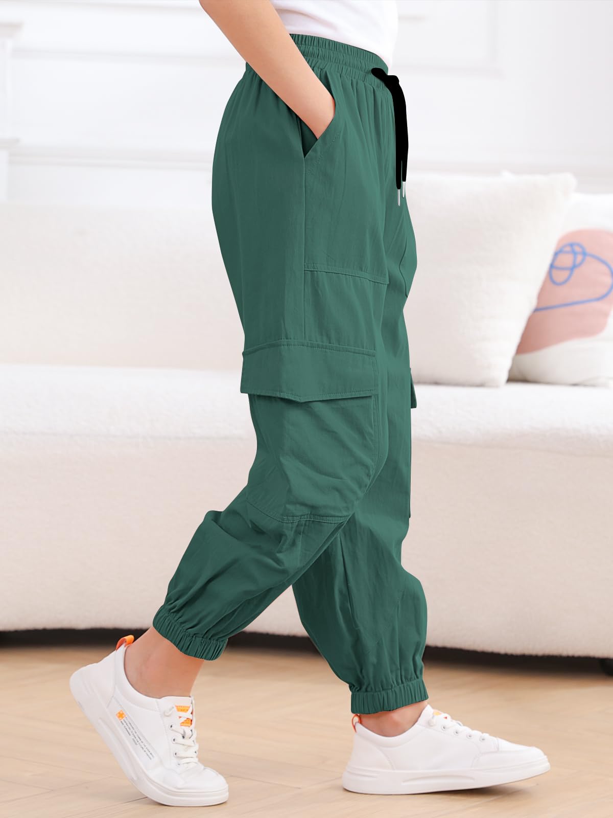 Design:Elastic waist design and drawstring,elastic ankle cuffs,Loose and easy to adjust.Cargo jogger pants perfect for active girls and won't have bound feeling.