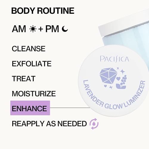 🌙 Moon-Kissed Radiance for Your Skin: Enhance your natural beauty with Pacifica Lavender Glow Luminizer Moon-Kissed Body Jelly. This luminous body illuminator delivers a subtle, radiant shimmer that instantly brightens and enhances your skin's natural glow. Perfect for special occasions, daily glow enhancement, or adding a touch of radiance to your evening look, it effortlessly creates the illusion of healthy, dewy, moonlit skin. ✨ Hydrating & Shimmer-Infused Formula: Our luxurious body jelly is expertly crafted with skin-nourishing ingredients to hydrate and illuminate in one easy step. Infused with delicate, finely milled shimmer, it provides a subtle yet noticeable glow that flatters every skin tone. Hydrating ingredients ensure your skin feels smooth, soft, and beautifully moisturized without heaviness or stickiness. Your skin will look radiant and feel comfortable all day. 💧 Lightweight, Comfortable & Non-Greasy: The Lavender Glow Body Jelly has an incredibly lightweight texture that effortlessly glides onto skin, quickly absorbing without sticky residue or greasy feel. It leaves behind nothing but comfortable hydration and a subtle sheen, perfect for layering under your favorite outfits or wearing alone for naturally glowing skin. No glittery mess or heavy creams—just an elegant, breathable radiance you’ll love. 🌿 Clean, Ethical & Skin-Friendly: At Pacifica, we believe beauty should be effective, ethical, and clean. Our Lavender Glow Luminizer is 100% vegan, cruelty-free, and formulated without parabens, phthalates, sulfates, mineral oil, or synthetic fragrances. Dermatologist-tested, it’s gentle enough for sensitive skin, allowing everyone to enjoy radiant, hydrated skin without compromise. Experience beautiful glow and hydration that align with your values and wellness-focused beauty routine. 🌸 Delicate & Luxurious Fragrance: Delight in the gentle, luxurious aroma of calming lavender blended with warm, comforting vanilla. This delicate scent enhances your daily skincare ritual, creating a relaxing and uplifting sensory experience. Perfectly subtle yet beautifully aromatic, it elevates the feeling of your skincare routine. Layer it with your favorite perfume or body lotion for a personalized fragrance and glow experience, or wear it solo to enjoy its calming, soothing scent. ✨ Versatile for Everyday & Special Occasions: From everyday hydration to a glamorous night-out glow, Pacifica Lavender Glow Body Jelly meets all your skincare needs. Apply to shoulders, collarbone, arms, legs—anywhere you want to enhance your natural beauty with a subtle, glowing sheen. Perfect for all skin types and tones, it’s the ultimate multi-purpose body luminizer, transforming your skin into luminous perfection with just a few effortless swipes. Embrace your glow with Pacifica, and let your skin shine beautifully every day.