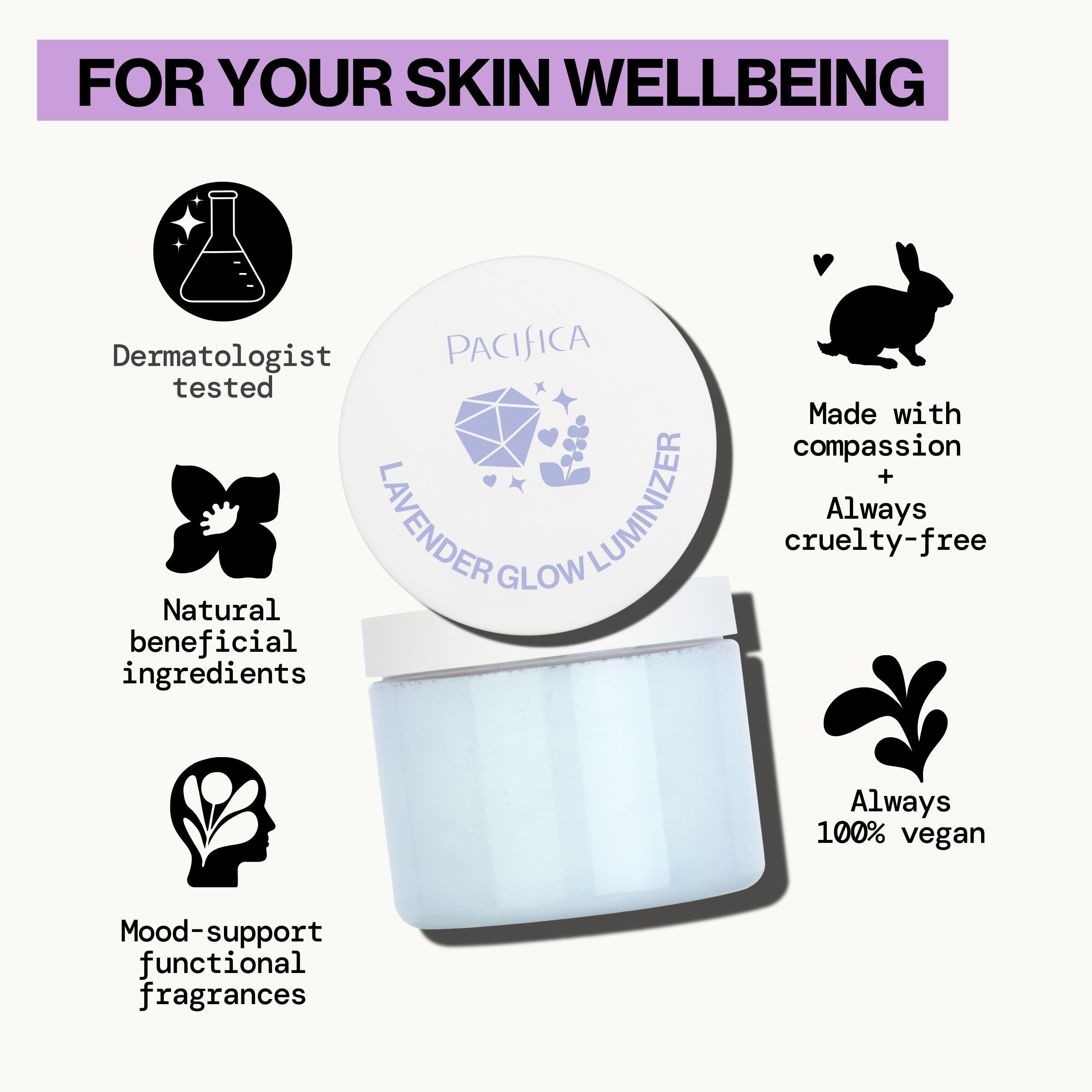 CLEAN, VEGAN & CRUELTY-FREE BEAUTY: Pacifica’s Lavender Glow Body Jelly is proudly formulated following strict clean beauty standards—free from parabens, phthalates, sulfates, mineral oils, and synthetic fragrances. It’s gentle, dermatologist-tested, and suitable for all skin types, including sensitive skin. Our commitment to cruelty-free, vegan beauty ensures your luminous glow aligns with ethical values and mindful beauty choices.
