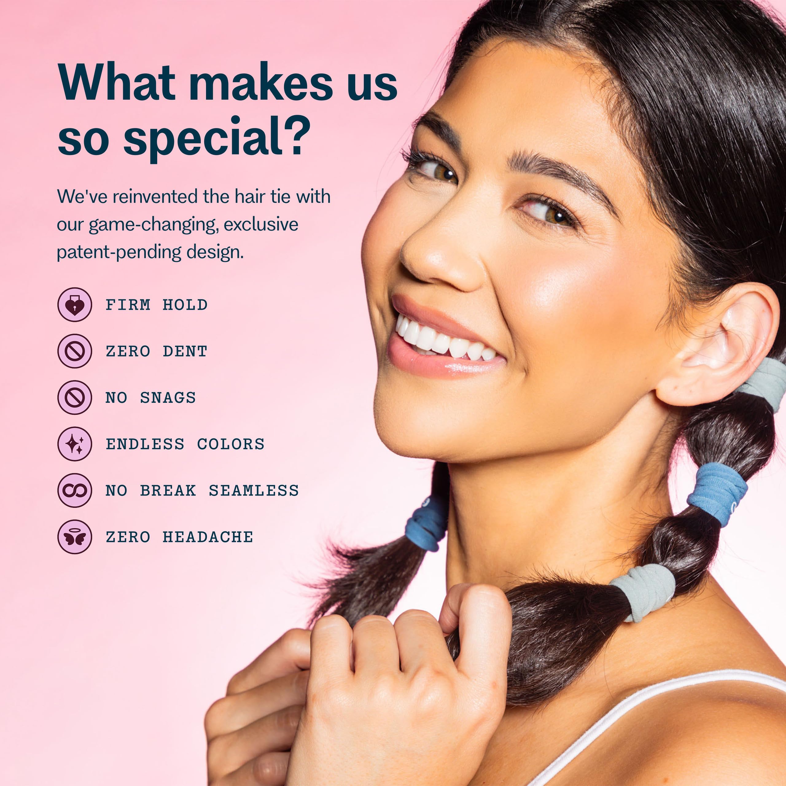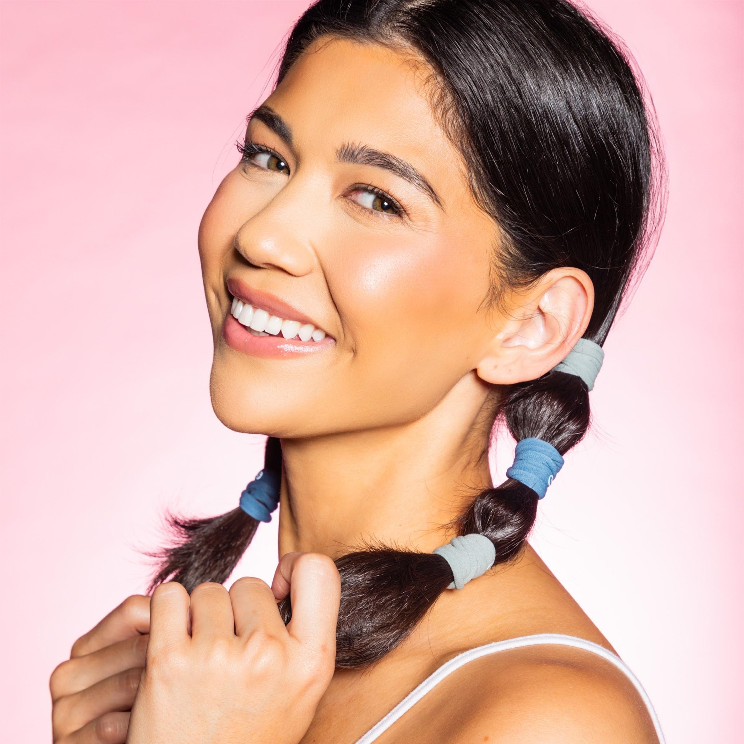 Introducing the perfect solution for fine, brittle, or bleached hair with Gimme Beauty Fine Hair Elastic Bands. These innovative hair ties feature a patent-pending design specifically engineered to provide a gentle yet secure hold while helping protect your delicate strands throughout the day.These nylon and spandex hair bands are thoughtfully crafted with seamless construction to help prevent common styling discomforts like headaches and hair dents. The specialized stretch-to-fit technology works to maintain a comfortable grip while being gentle enough as an everyday-use hair tie, making them ideal for creating lasting hairstyles without compromising hair health.Each elastic in this pack features a unique blend of nylon, silk, and spandex materials that helps provide snag-free styling versatility. Whether you're securing a ponytail, finishing off a braid, or creating everyday hairstyles, these hair ties offer the perfect combination of flexibility and hold for fine hair types.At Gimme Beauty, we believe hair solutions aren't one size fits all. We understand that each person's hair journey is unique, which is why we've designed these hair ties to work for all hair types, helping you feel confident and unstoppable in your daily life.We celebrate the sisterhood that grows from our shared experiences with hair. While some brands focus on exclusivity, we believe in creating accessible, inclusive products that work for everyone. Our mission goes beyond hair accessories—we're here to amplify your confidence because we know that confident women are unstoppable.