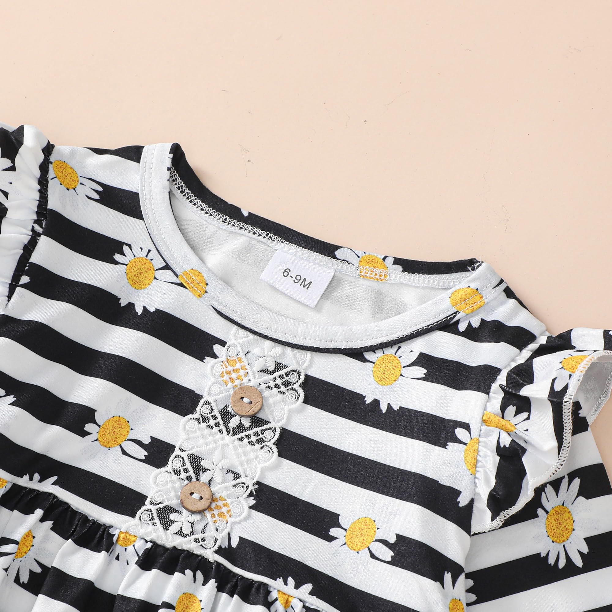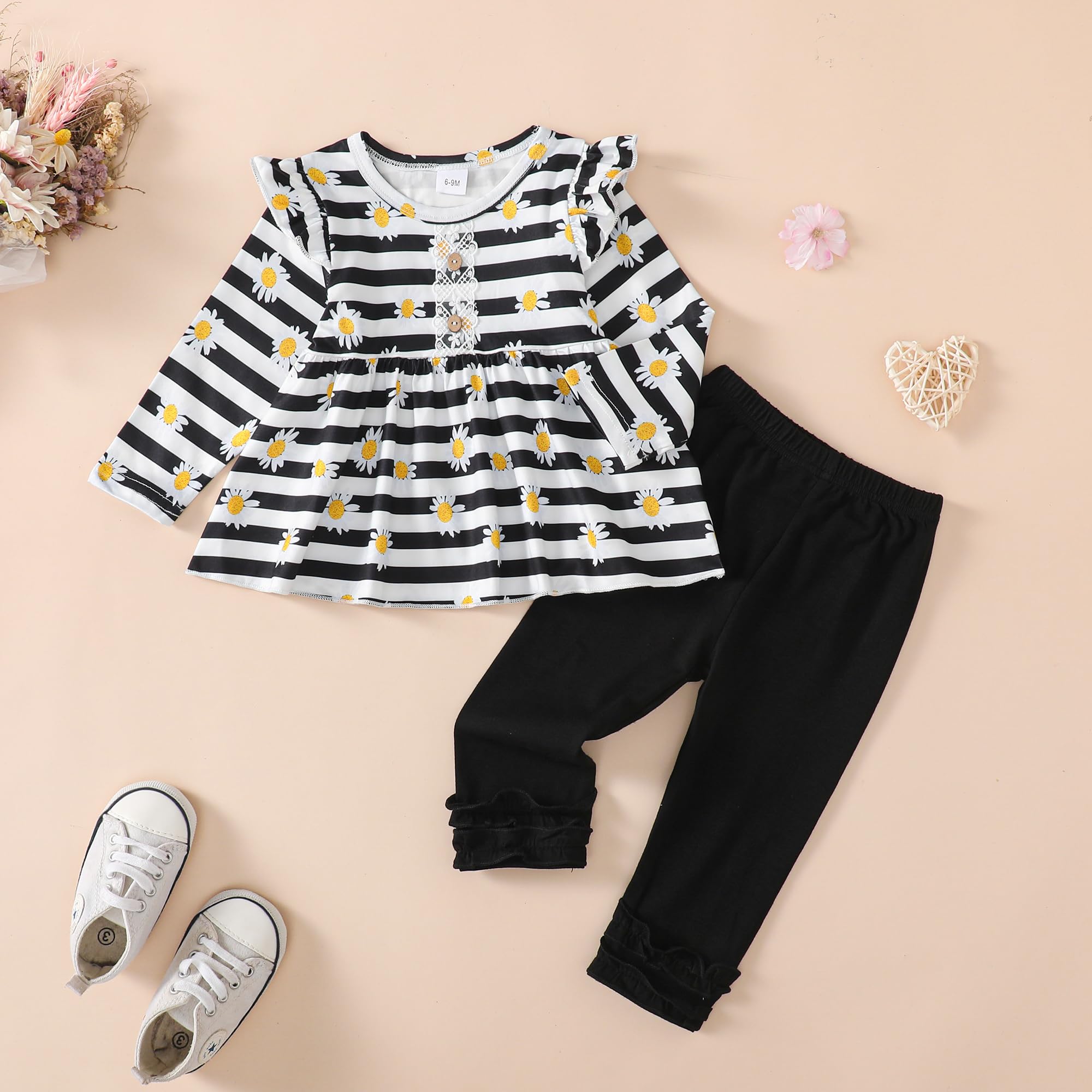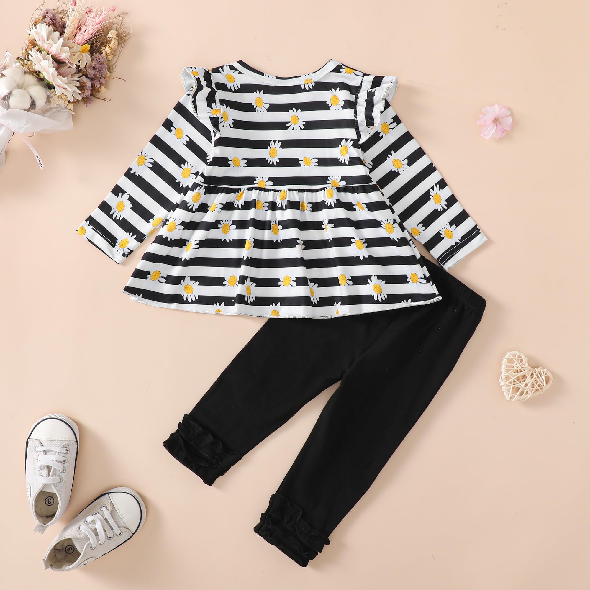 Design: Flower/stripe ruffle long sleeve shirt, match with solid color pants, simple yet cute baby girl outfit