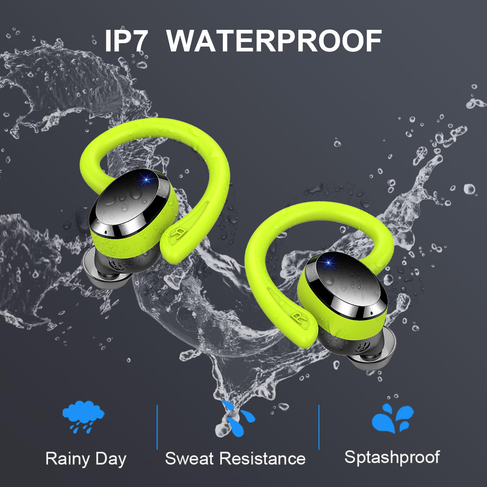 【Comfortable Sports Earhooks, IP7 Waterproof】Unlike most sport headphones, Q38 sport wireless headphones are designed with a soft, ultra-light and flexible 45° earhook structure, which can fit your ears smoothly. And a single earbud is as light as 7g, equipped with 3 different sizes of high-quality silicone earplugs (S/M/L). Also with IP7 certified waterproof technology, you can protect the sport earbuds from sweat and rain during sports or daily use. Best choice for workout, running, gym.