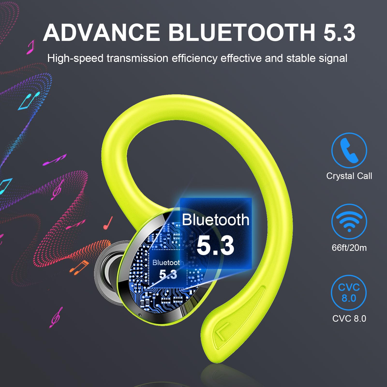 【48 Hrs Battery, Dual LED Display】Our wireless earphones over ear charging case with LED power display shows remaining power in percentage. Charging case presents its battery from 1%-100% to let you know the current power status of your running headphones and charging case anytime anywhere. Up to 6-8 hours playtime of normal usage on a single charge and boost that to 48 hours playtime with the 800mah compact charging case. With type-C quick charge, it only takes 1.5 hrs to charge the case.