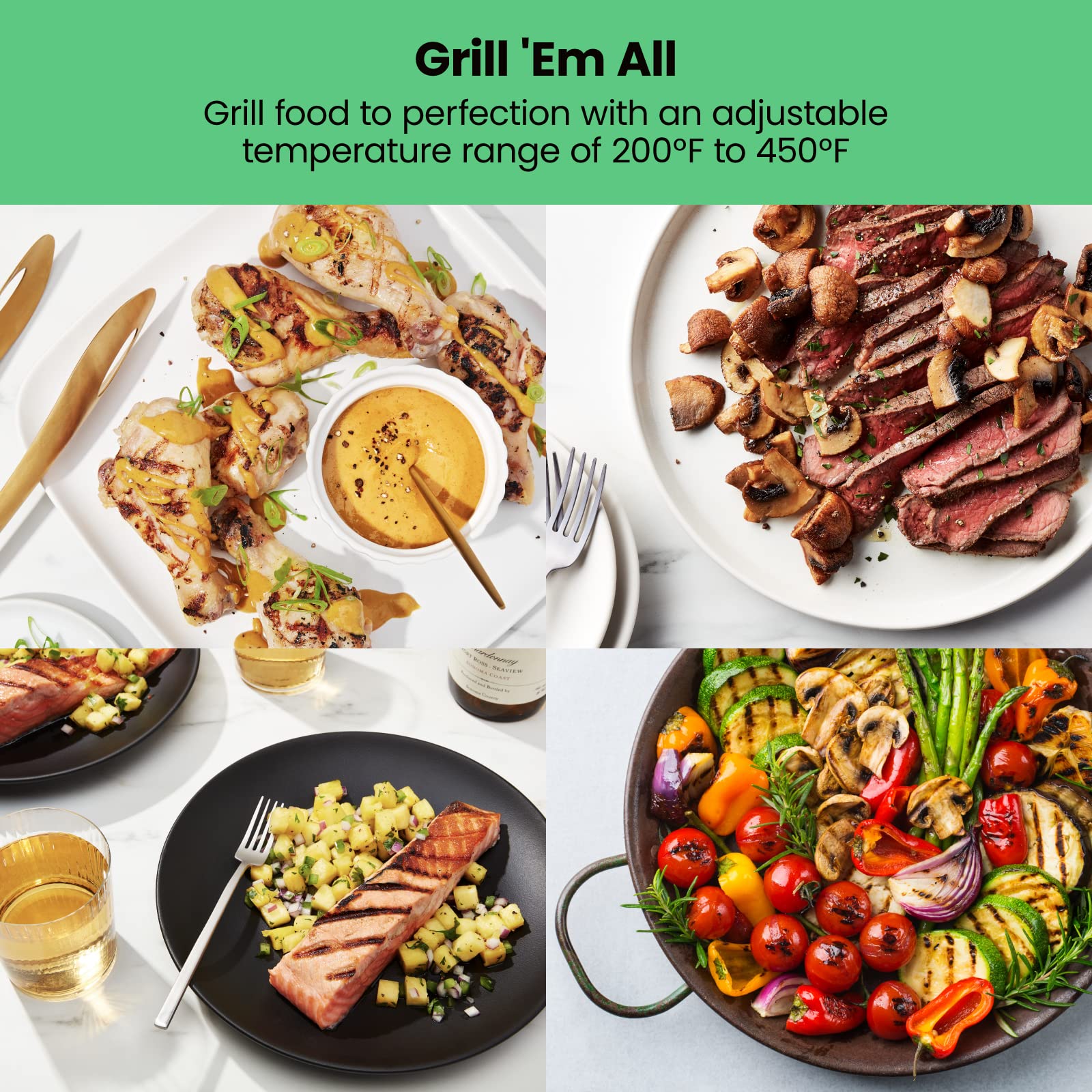 CUSTOMIZABLE HEAT: An adjustable temperature control makes this indoor smokeless grill ideal for kitchen cooking. Whether you need high heat for a sear or lower temperatures for a quick warm-up, customize your grill to meet all your cooking preferences.