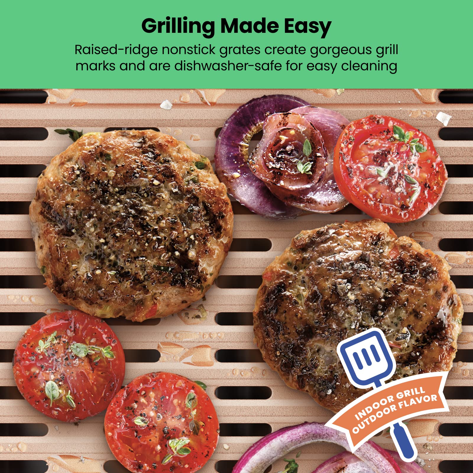 COOK FOR A CROWD: The extra-large 15 x 10-inch grilling space makes this inside grill ultra-functional with plenty of space to cook for the whole family. Our indoor grills & griddles help prepare main dishes and sides all at once to get dinner done quickly.