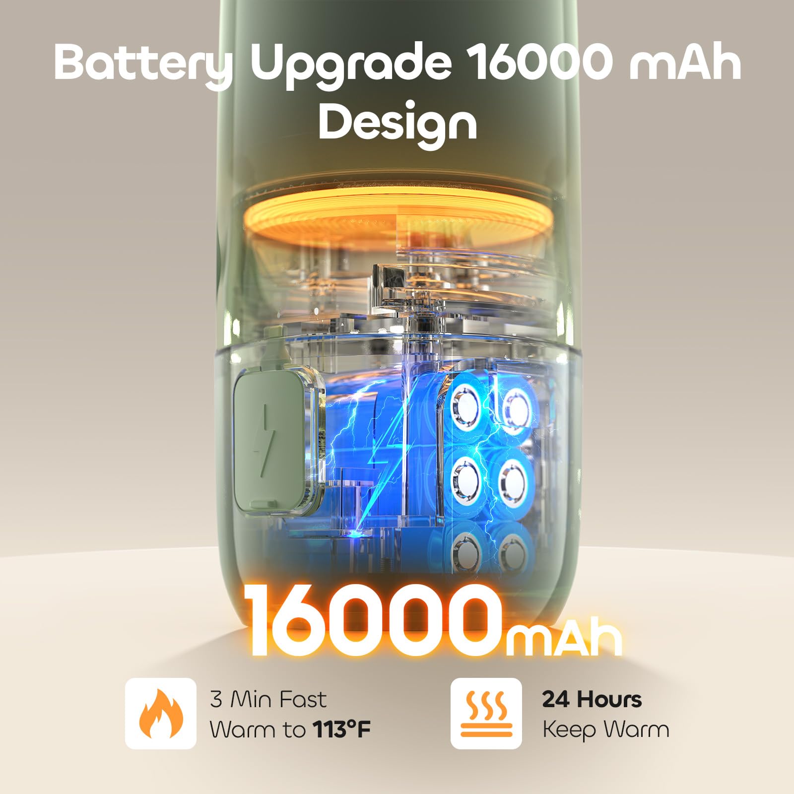 17oz Large Capacity & Long-lasting Heat Retention β˜› This bottle warmer on the go provides enough capacity for multiple feedings, and its compact design allows it to be placed in a daily bag. Hassle-free for outdoor baby feeding. When heated to 212Β°F in normal summer conditions, the water temperature remains at 122Β°F after 24 hours. In winter, the temperature may drop below 122Β°F, but this still demonstrates our exceptional long-term heat retention capabilities.