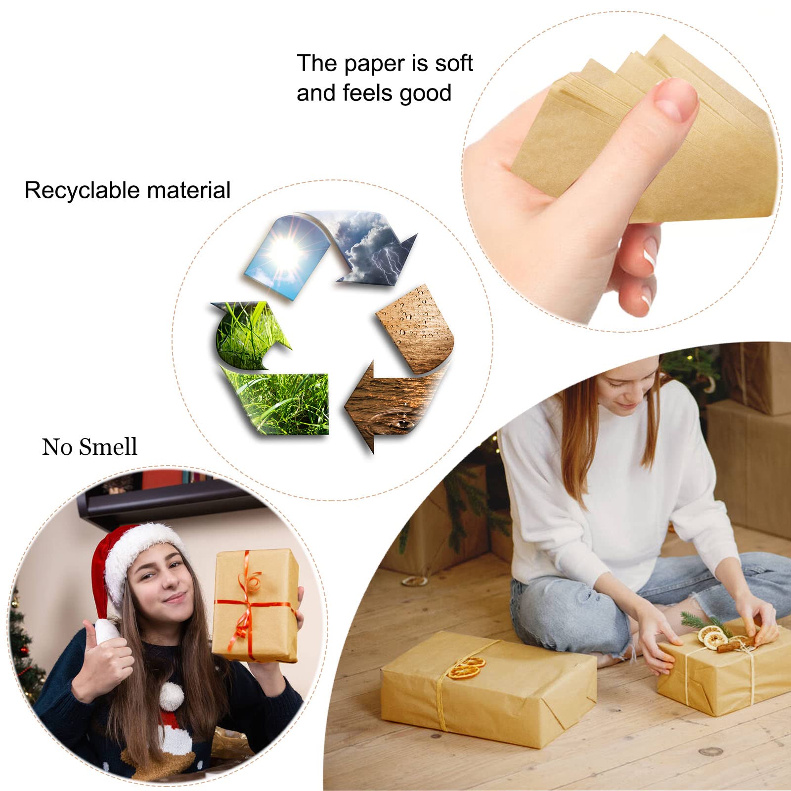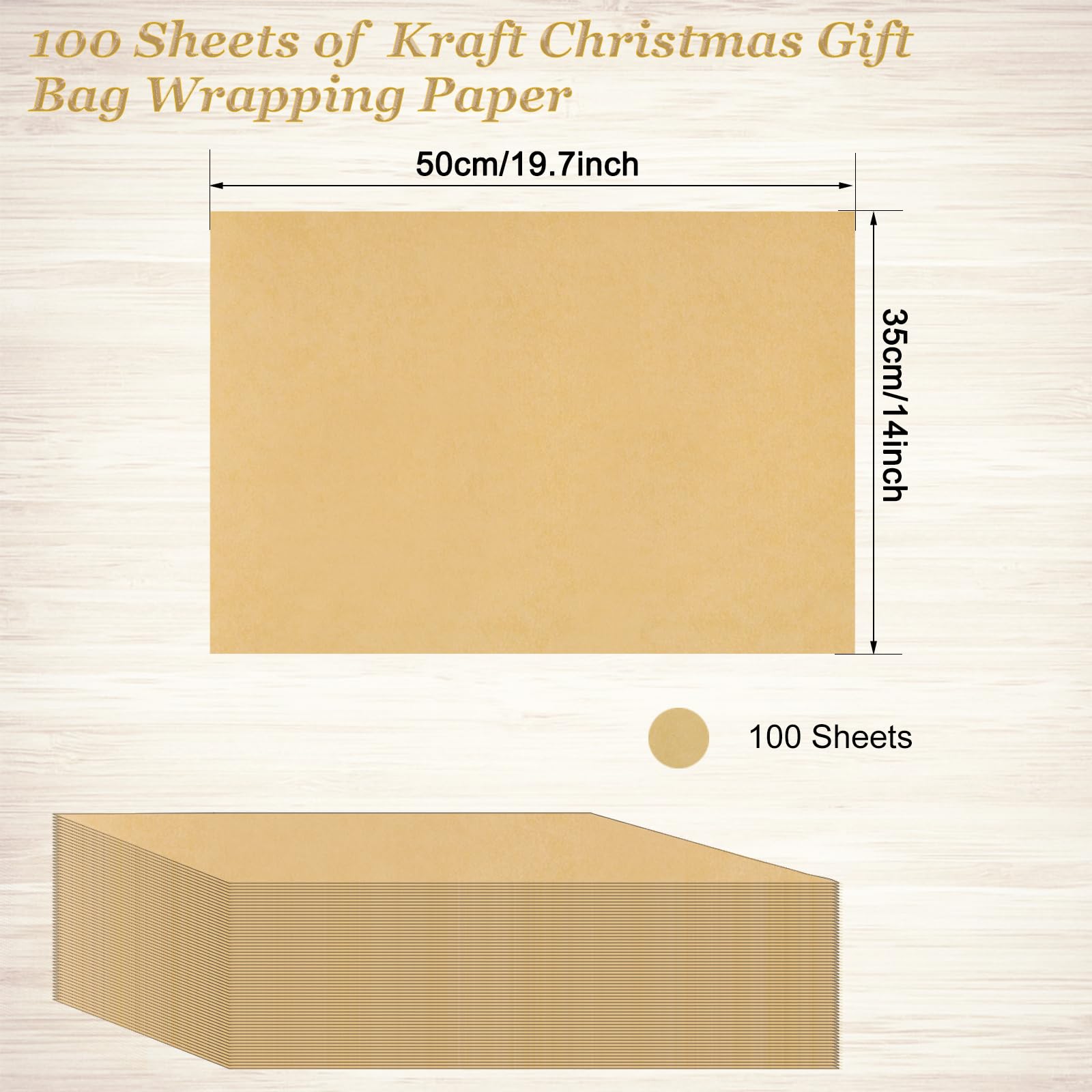 The kraft tissue paper bulk package contains 100 sheets of 14 x 20 inches kraft wrapping paper, enough quantity for you to use at will