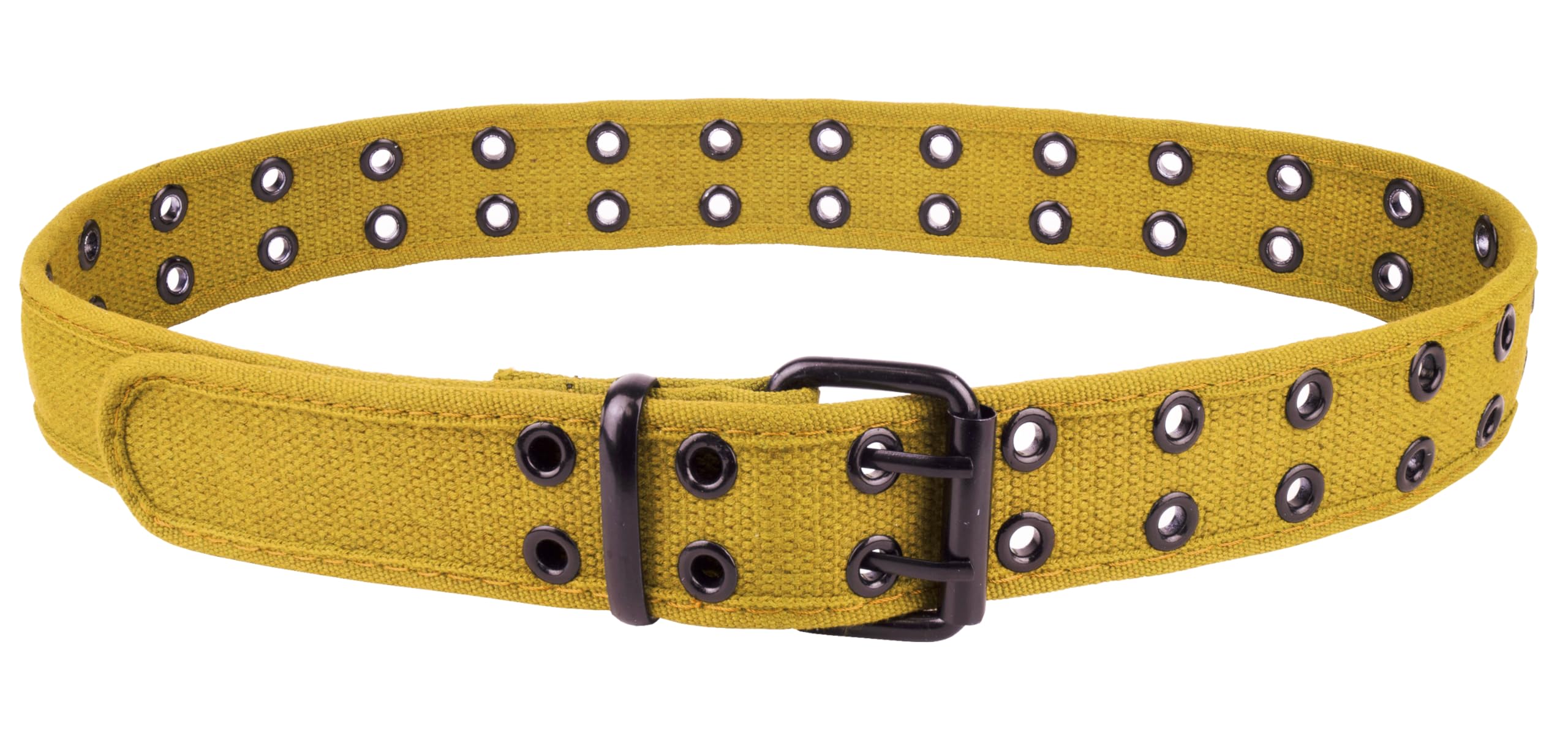 Canvas Web Belt /Black Double Grommet Holes / Metal Buckle