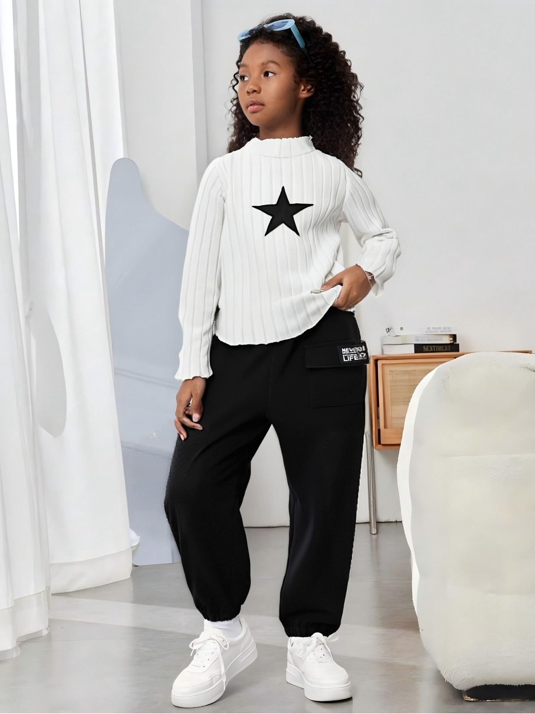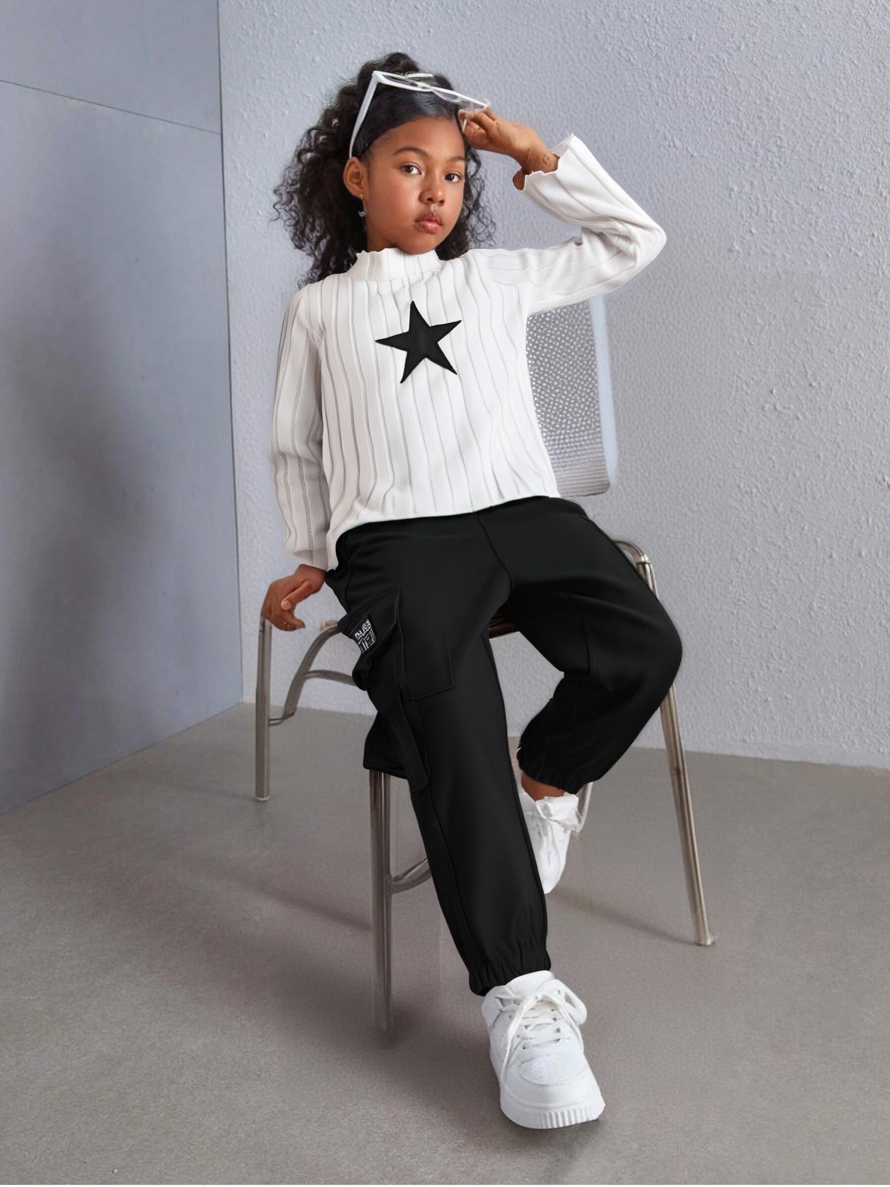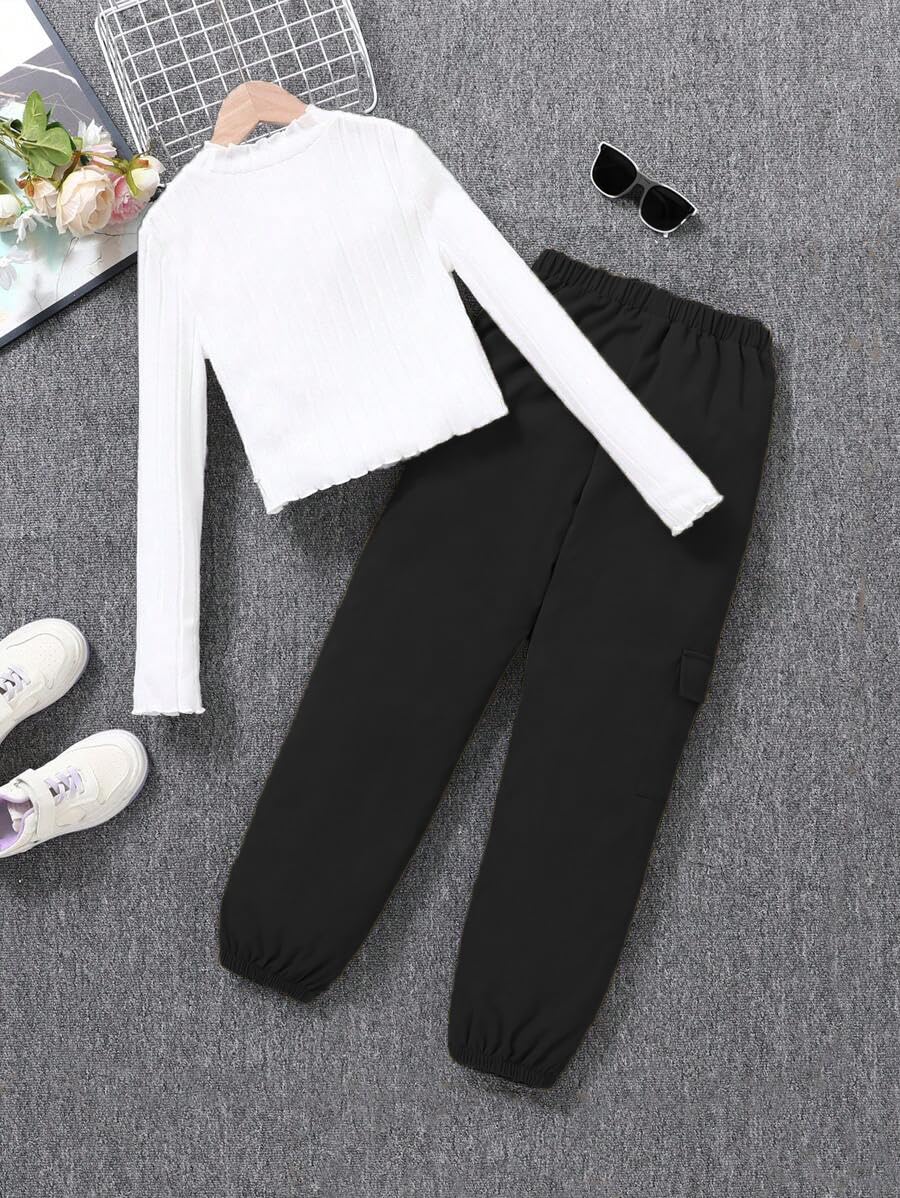 🎨 Stylish Design Details - Features a ruched long sleeve sweater top with a classic crew neck and trendy cargo jogger pants. The fashionable combo blends casual comfort with modern tween girls' fashion.