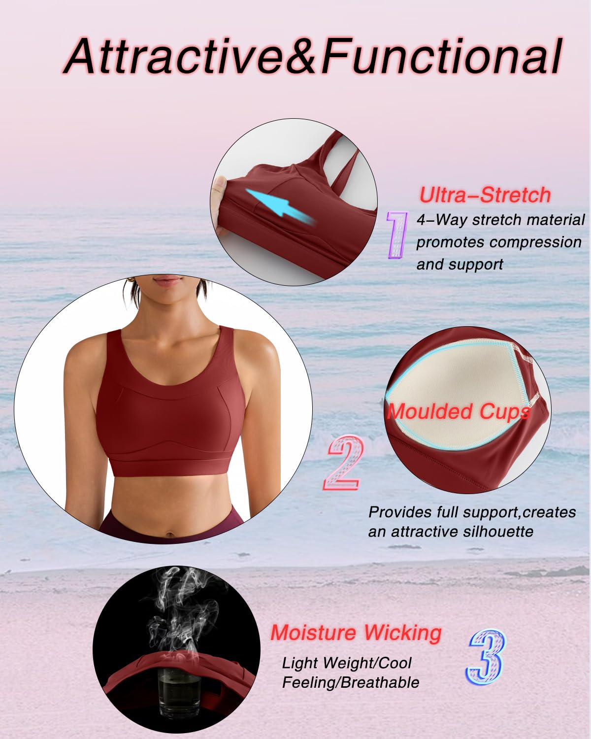 โ ใHIGH IMPACT SPORTS BRAใ๏ผIntense workouts call for extra support. RUNNING GIRL Sports Bra for Women is strategically designed to deliver support and tailored for high impact activities like running, jumping and full body workouts. Featuring moulded cups and stretch straps for the perfect fit. Everything will stay in place and you can fully concentrate on aiming high!