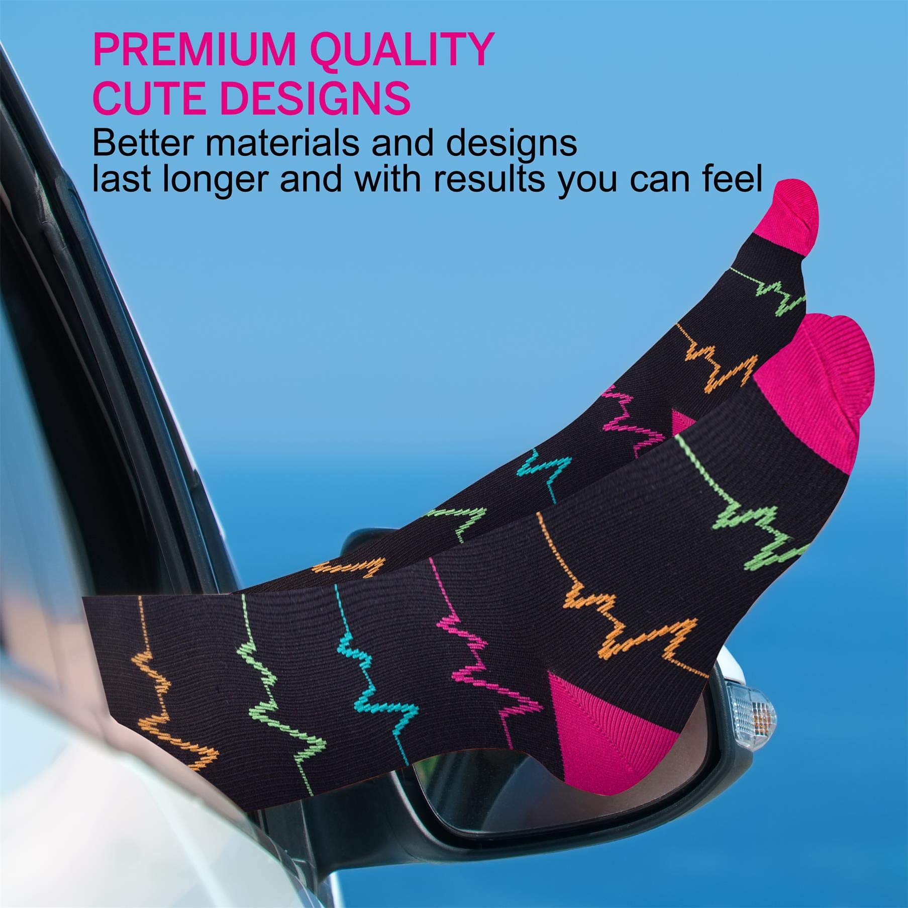 COMPRESSION SOCKS 20-30 mmHg. A Durable Compression Socks have wide variety of fun colors and designs specially for nurses, size rang cover both women and men. Double stitched with functional Fabric and knitted with seamless compression technology. Fits comfortable, easy to get on and delivers 360° support to feet and legs. Knee high long sleeves compression socks make sure the graduated support effect entire calf.