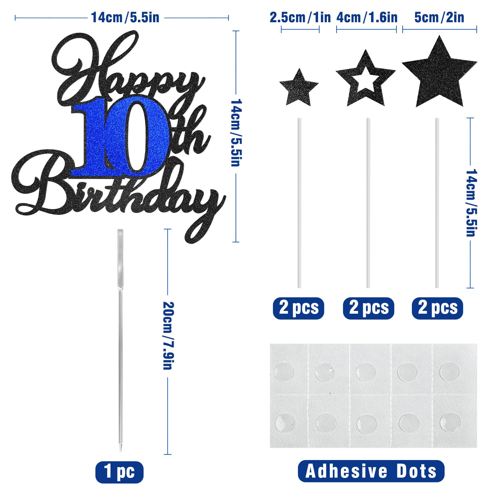 【Attention】The "Happy 10th Birthday" is single-sided glitter, with a plain white backside. It is for decorative purposes only and is not edible. Please Do NOT use it in the oven or microwave.