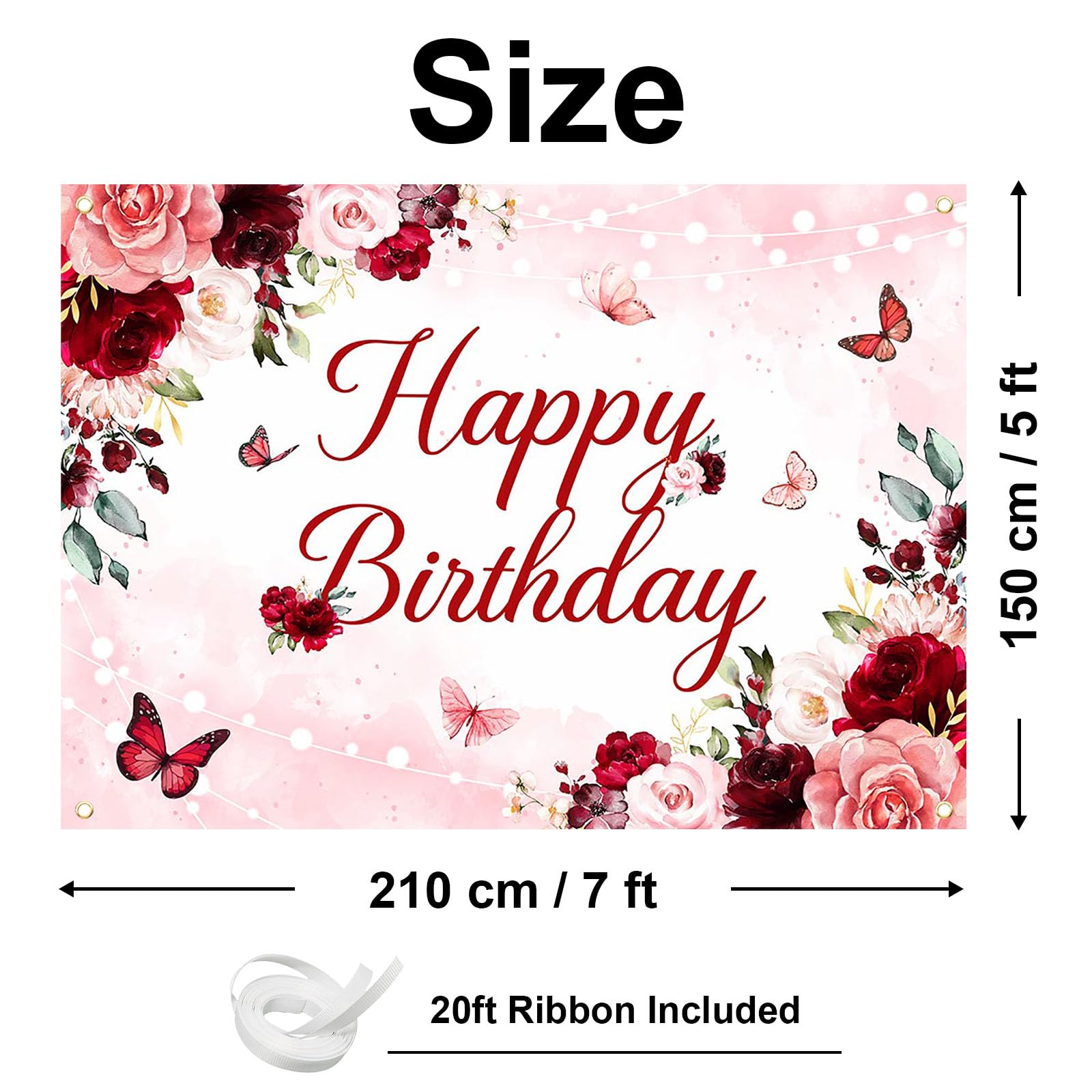 PHOTO BACKDROP OR DECOR: 70.8 '' (Width) x 43.3 '' (Height), the pink and red burgundy birthday banner makes a vivid and festive backdrop for photos or a stunning decorative accent for indoor and outdoor parties