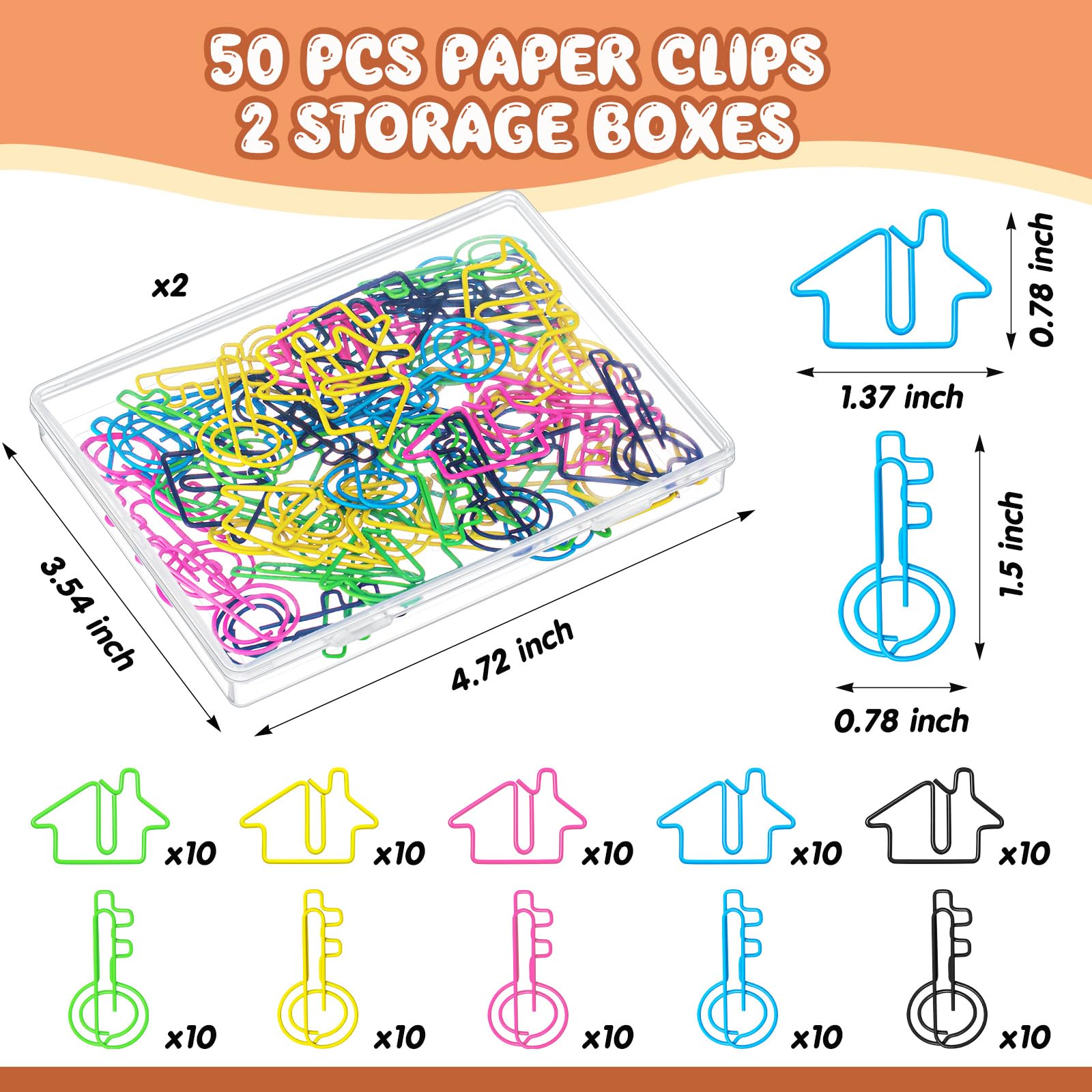 Abundant Real Estate Agent Supplies: You'll receive 50 house-shaped paper clips, 50 key-shaped wire clips, and 2 clear storage boxes (102 pieces total). The sufficient quantity meets daily use needs, and you can also share them with colleagues or family