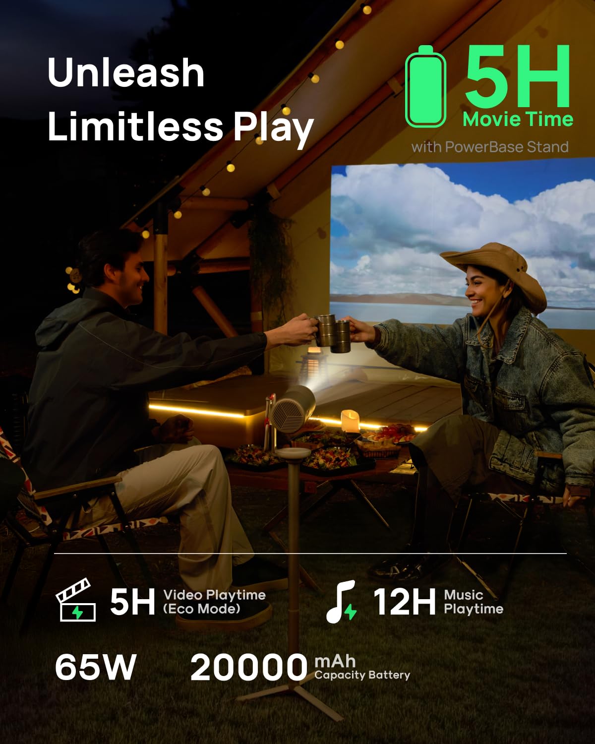 ๐ฌ๐๐๐๐๐ ๐๐ ๐ฉ๐๐๐๐๐๐ ๐ณ๐๐๐ ๐๐๐๐ ๐ท๐๐๐๐๐ฉ๐๐๐ ๐บ๐๐๐๐ ๏ผIncludes PowerBase Stand that doubles playtime up to 5 hoursโideal for long outdoor movie nights, camping, or extended entertainment without worrying about charging.