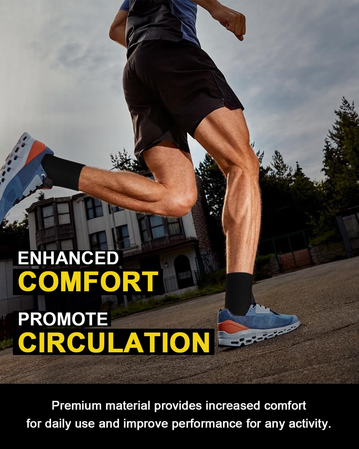 🏃PROTECTION & SUPPORT- Compression running socks can also help reduce swelling and inflammation in the ankle area. Compression ankle socks can provide additional support to the ankle joint, This added support can help prevent ankle sprains and other injuries, and can also improve overall balance and stability.