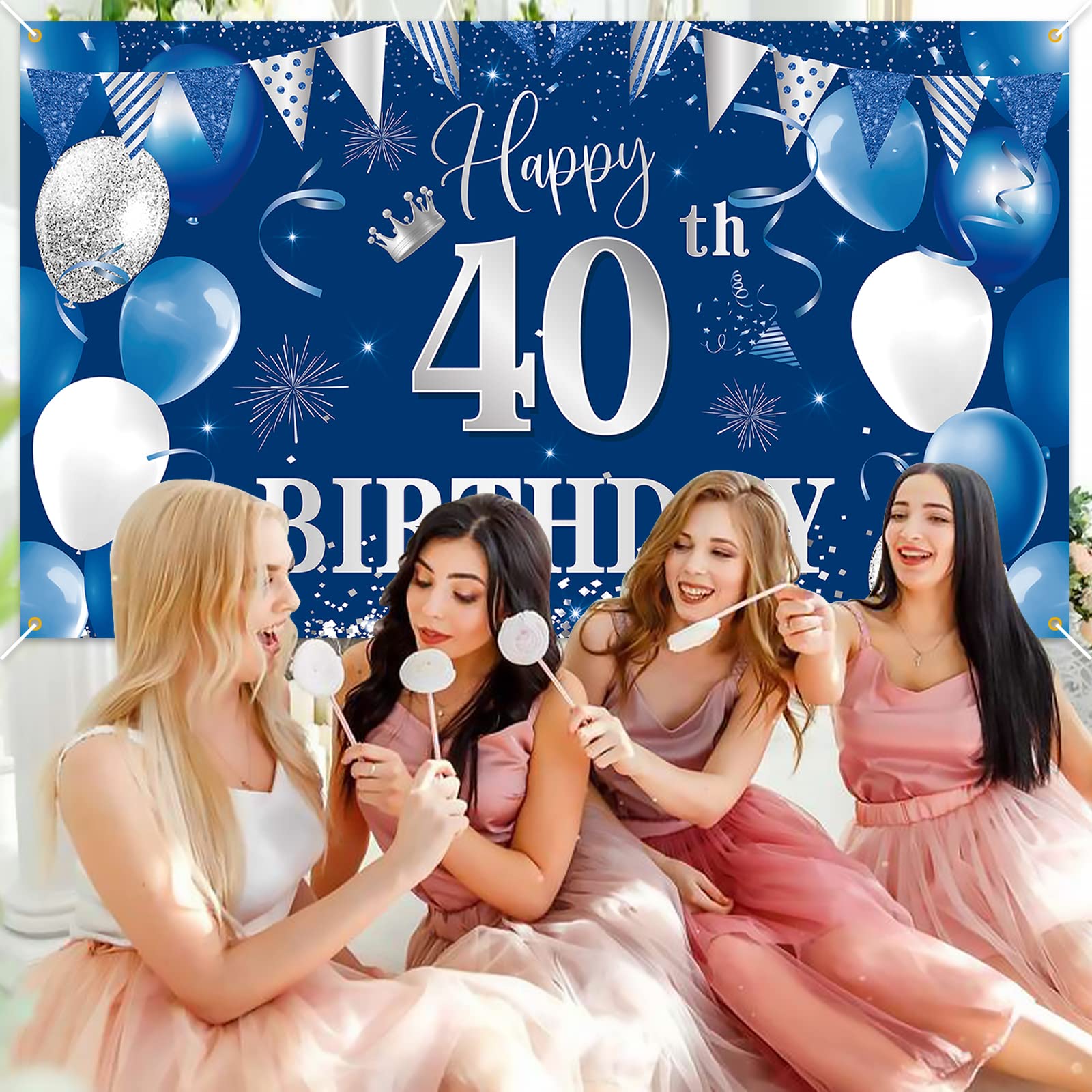 HIGH-QUALITY MATERIALS: The happy 40th birthday banner made of polyester fabric, soft, light weight, digital printing, bright color, high color fastness! The party background is washable and reusable.