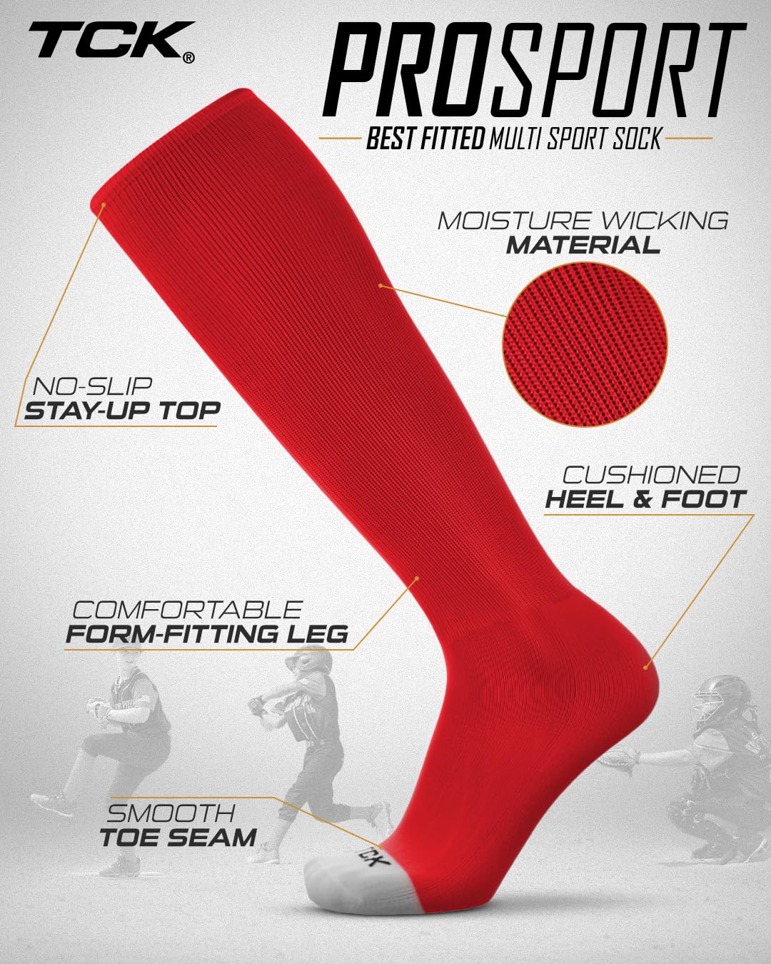 CLASSIC MULTISPORT ATHLETIC SOCKS: The Prosport is the gold standard for the classic athletic tube sock. This iconic sock has been produced for over a decade and has graced the feet of many top athletes. Hitting just below the knee, this sock is ideal for baseball, softball, football, field hockey and more! Available in over 20 team colors and 5 precise sizes, the Prosport is the sock to elevate your game to the next level.