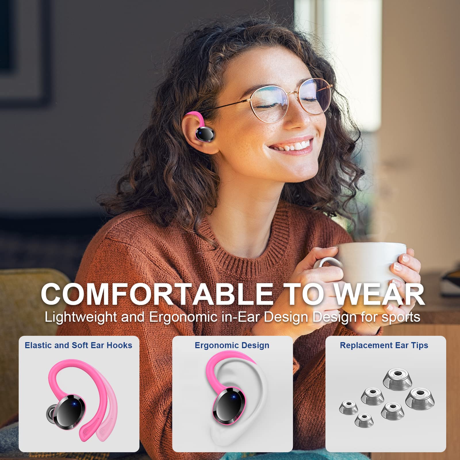 Comfortable Sports Earhooks, IP-X7 Waterproof: Unlike most sport headphones wireless, Q38 headphones are designed with a soft, ultra-light and flexible 45° earhook structure, which can fit your ears smoothly. And a single earbud is as light as 7g, equipped with 3 different sizes of high-quality silicone earplugs (S/M/L). Also with IP-X7 certified waterproof technology, you can protect the sport earbuds from sweat and rain during sports or daily use. Best choice for workout, running, gym.